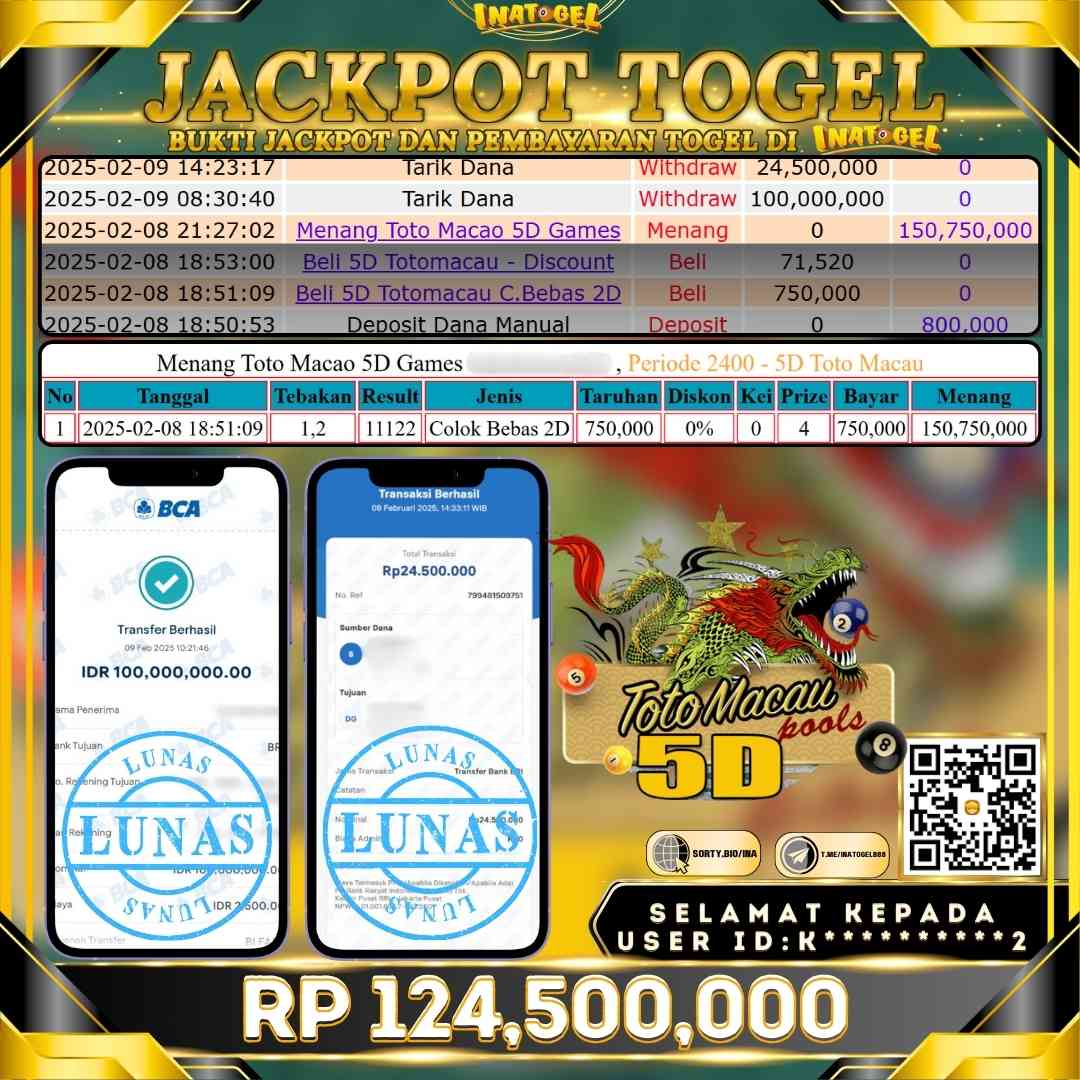 Inatogel Jackpot Togel Toto Macau 5D Rp124,500,000