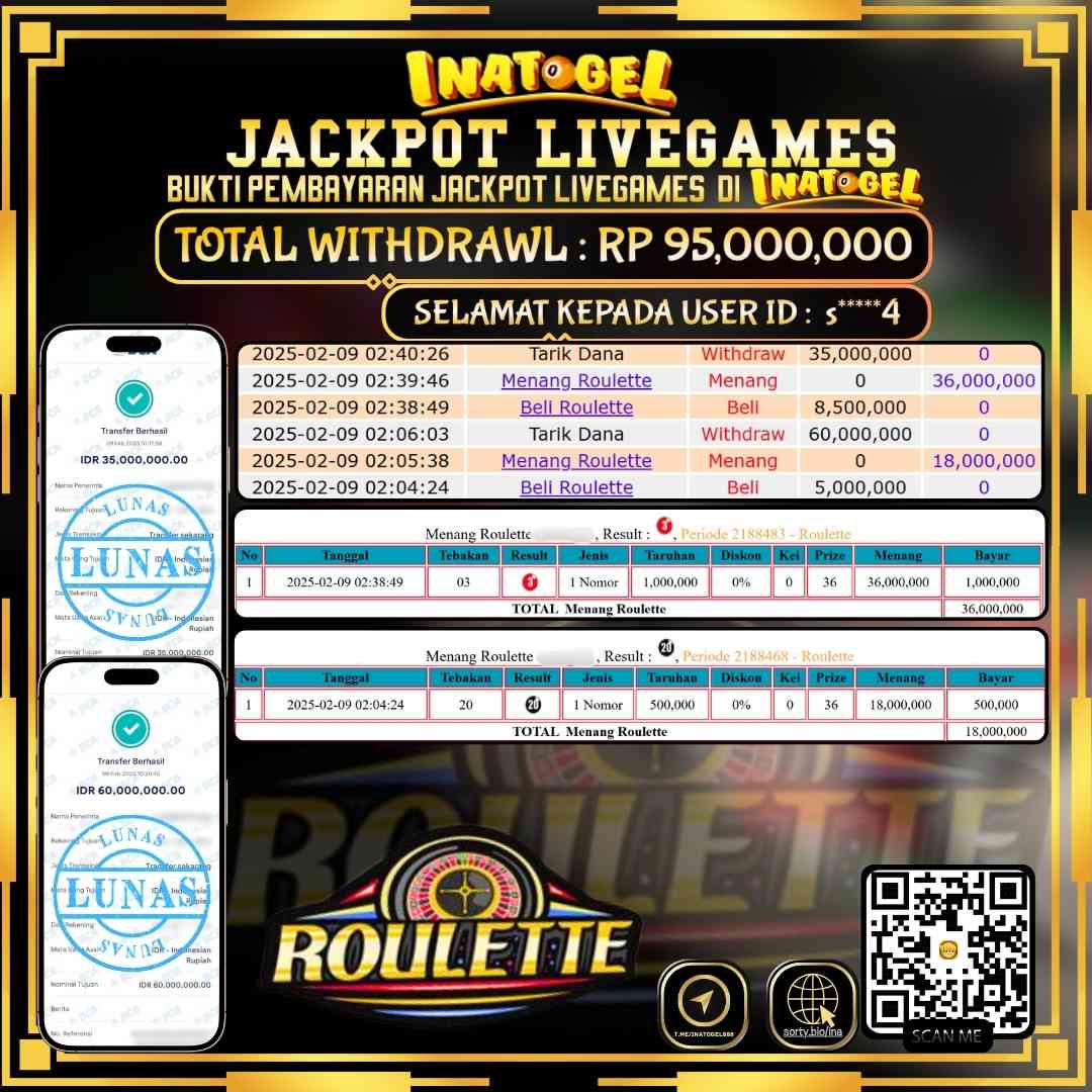 Inatogel Jackpot Live Game Roulette Rp95,000,000