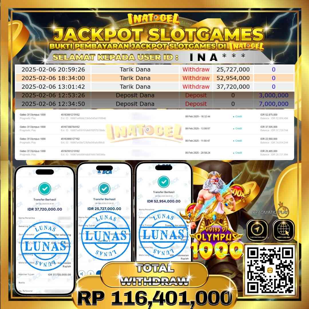 Inatogel Jackpot Slot Game Gates Of Olympus 1000 Rp116,401,000