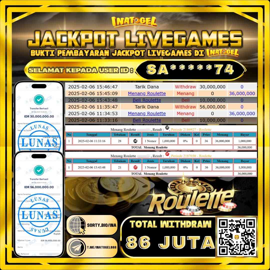 Inatogel Jackpot Live Game Roulette Rp86,000,000
