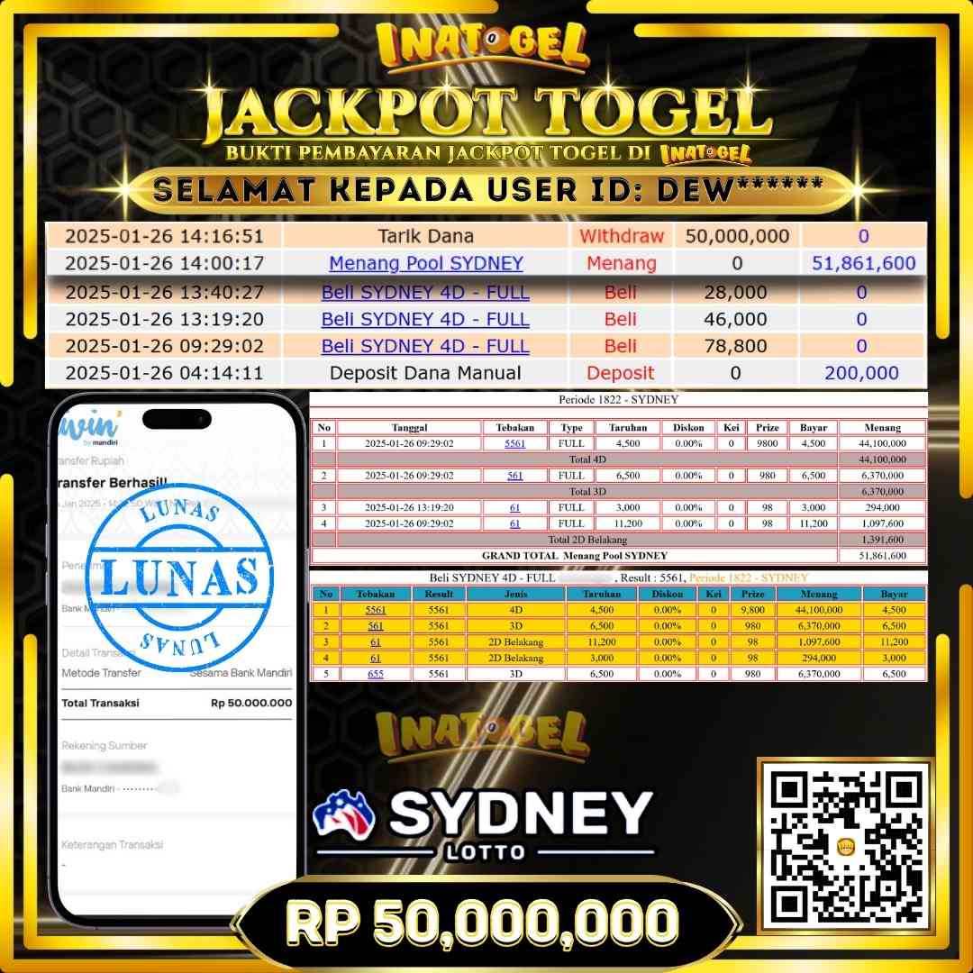 Inatogel Jackpot Togel Sydney Lotto Rp50,000,000