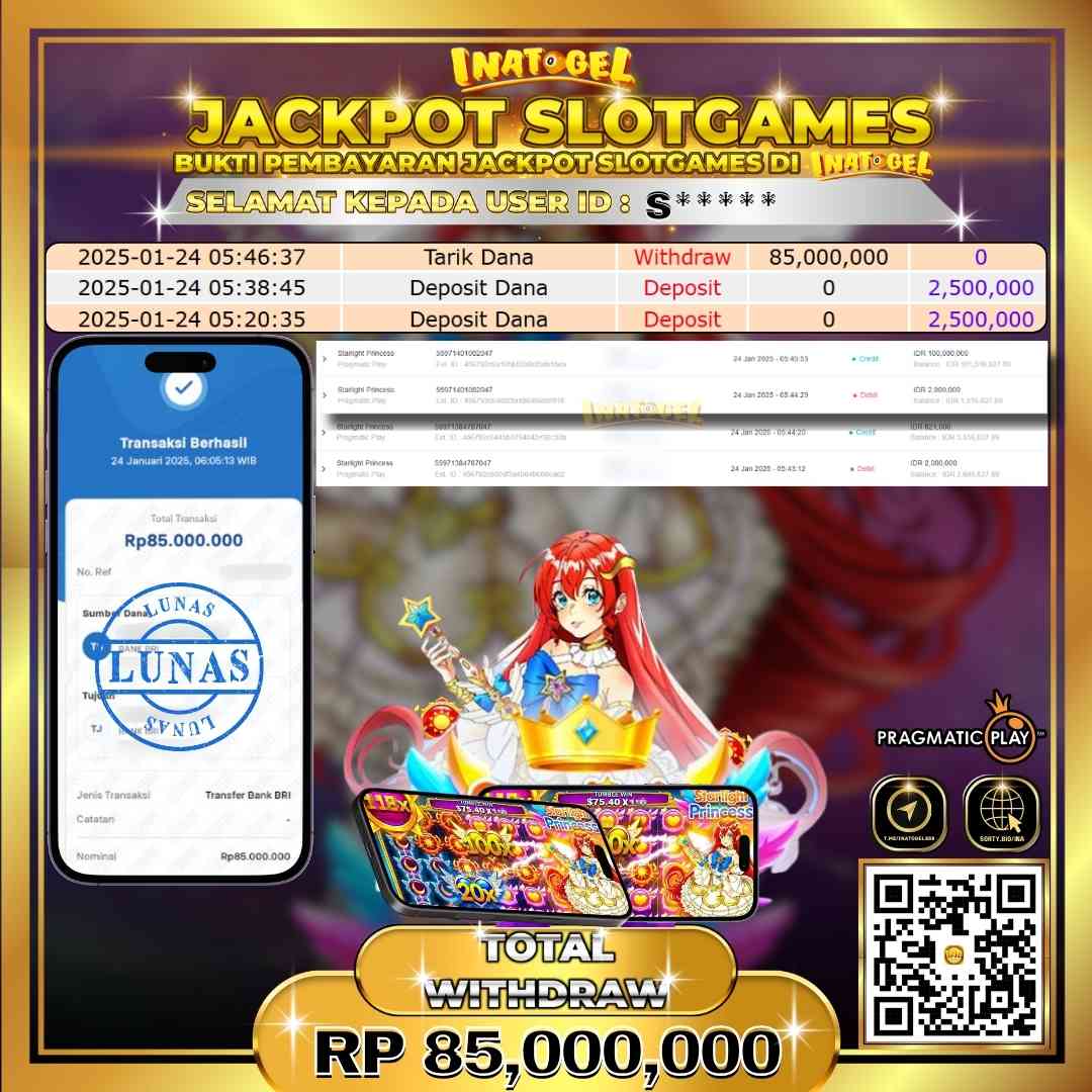 Selamat kepada UserId S***** telah berhasil mendapatkan kemenangan Jackpot pada permainan Slot Game Starlight Princess 1000 Inatogel sebesar Rp85,000,000,- . Inatogel situs terpercaya sejak dulu hingga saat ini , Untuk kemenangan berapapun pasti akan kami bayarkan . Jangan ragu bermain di Ina Togel . Kami pihak Inatogel Menyampaikan terima kasih kepada seluruh member Ina Togel yang telah Percaya dan setia Bersama kami bermain di Inatogel hingga saat ini.
