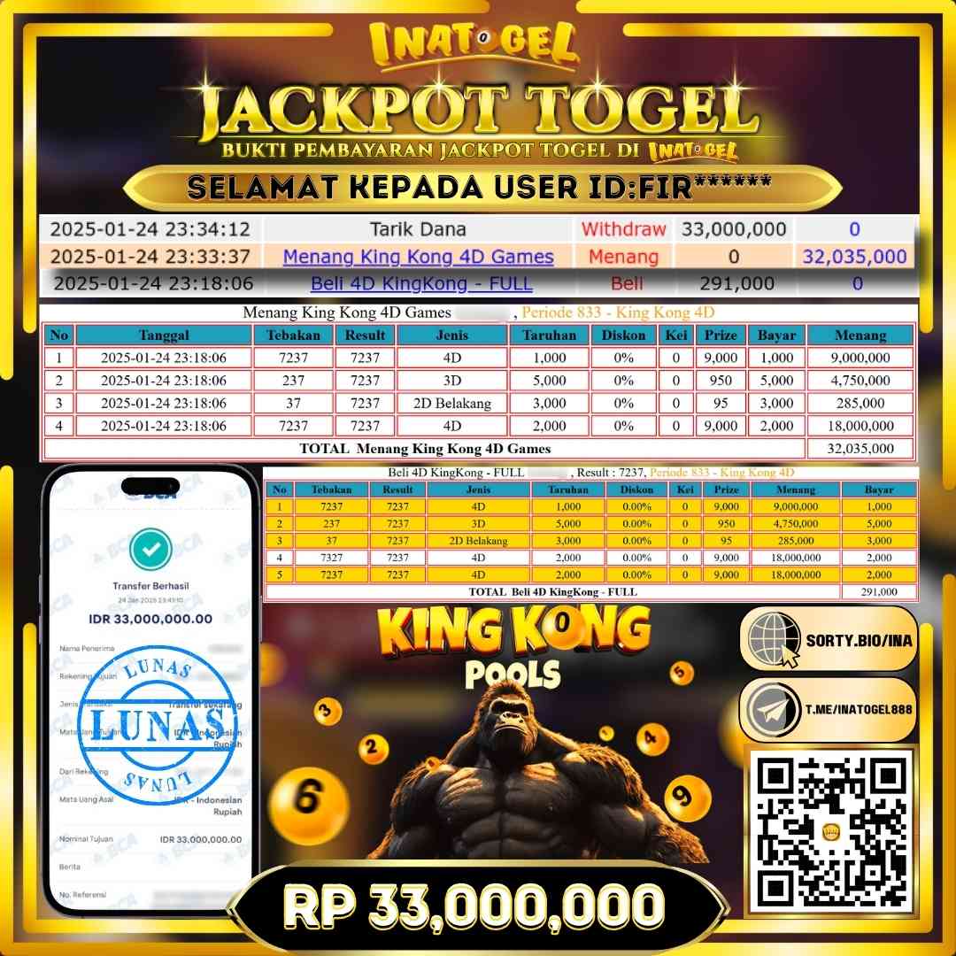 Inatogel Jackpot Togel King Kong 4D Rp33,000,000