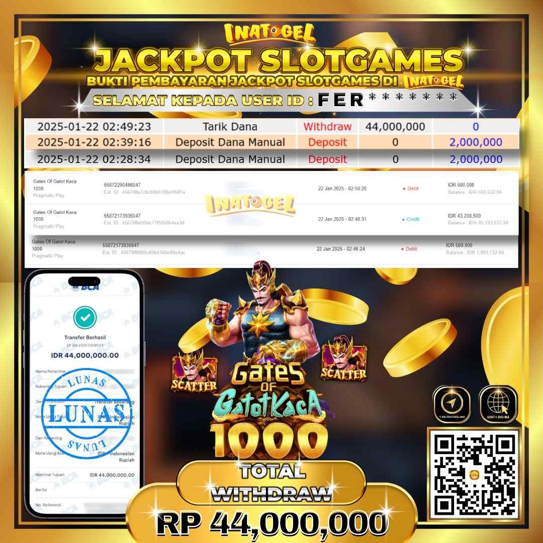 Inatogel Jackpot Slot Game Gates Of Gatot Kaca 1000 Rp44,000,000