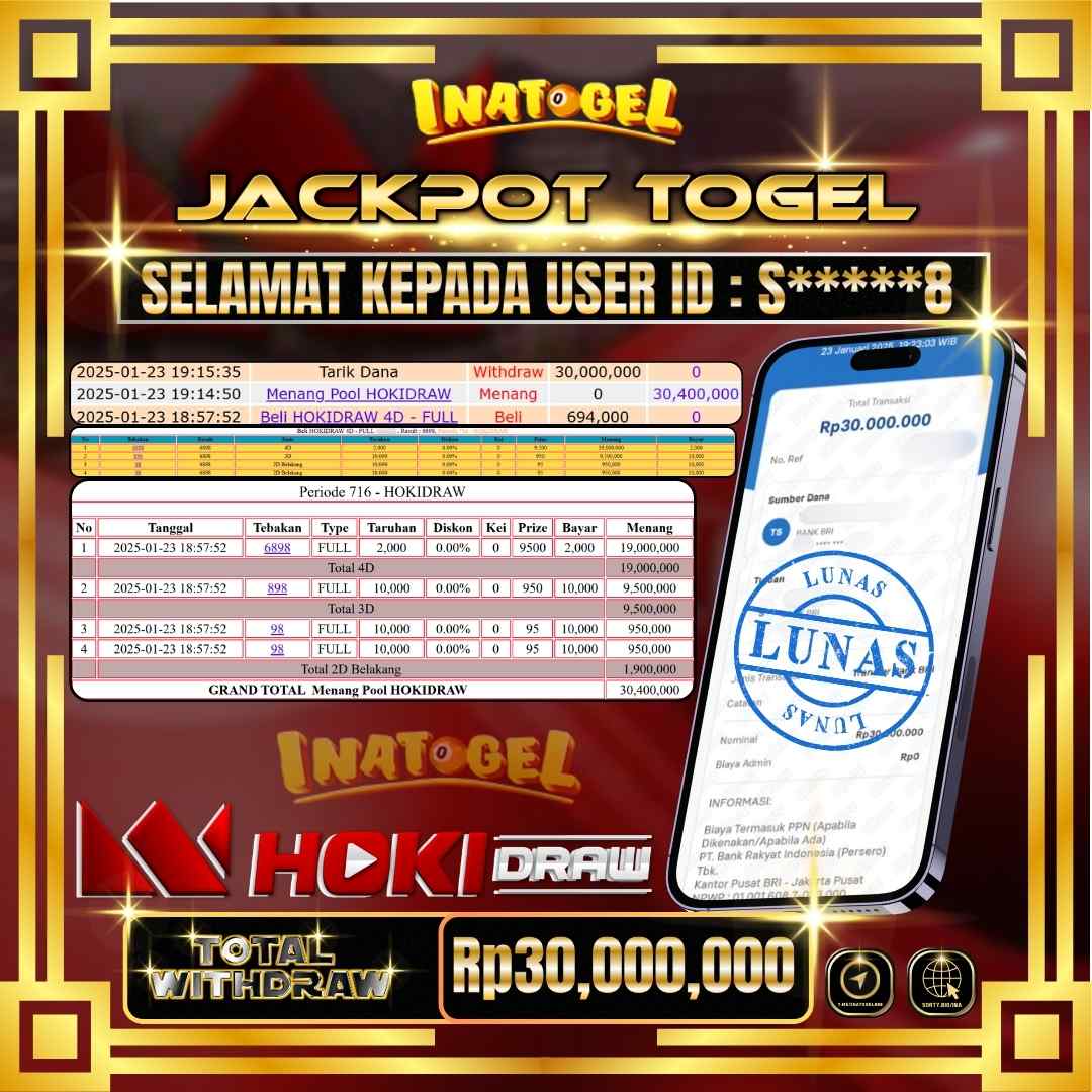 Inatogel Jackpot Togel Hoki Draw Rp30,000,000