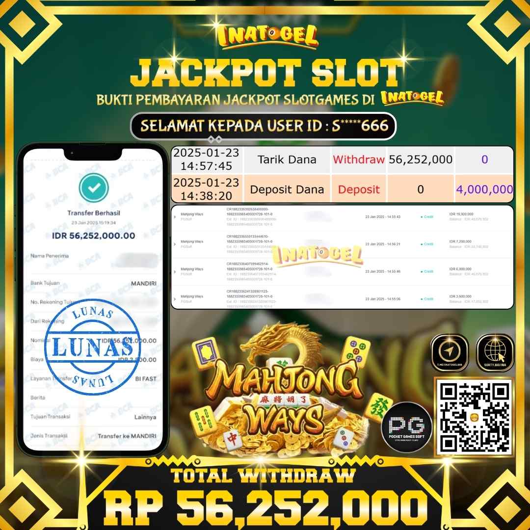 Inatogel Jackpot Slot Game Mahjong Ways Rp56,252,000