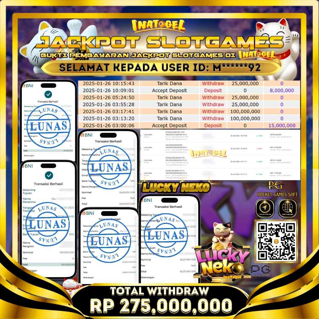 Inatogel Jackpot Slot Game Lucky Neko Rp275,000,000