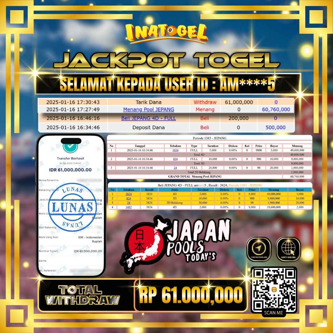 Inatogel Jackpot Togel Jepang Rp61,000,000