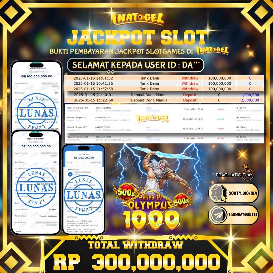 Inatogel Jackpot Slot Game Gates Of Olympus 1000 Rp300,000,000