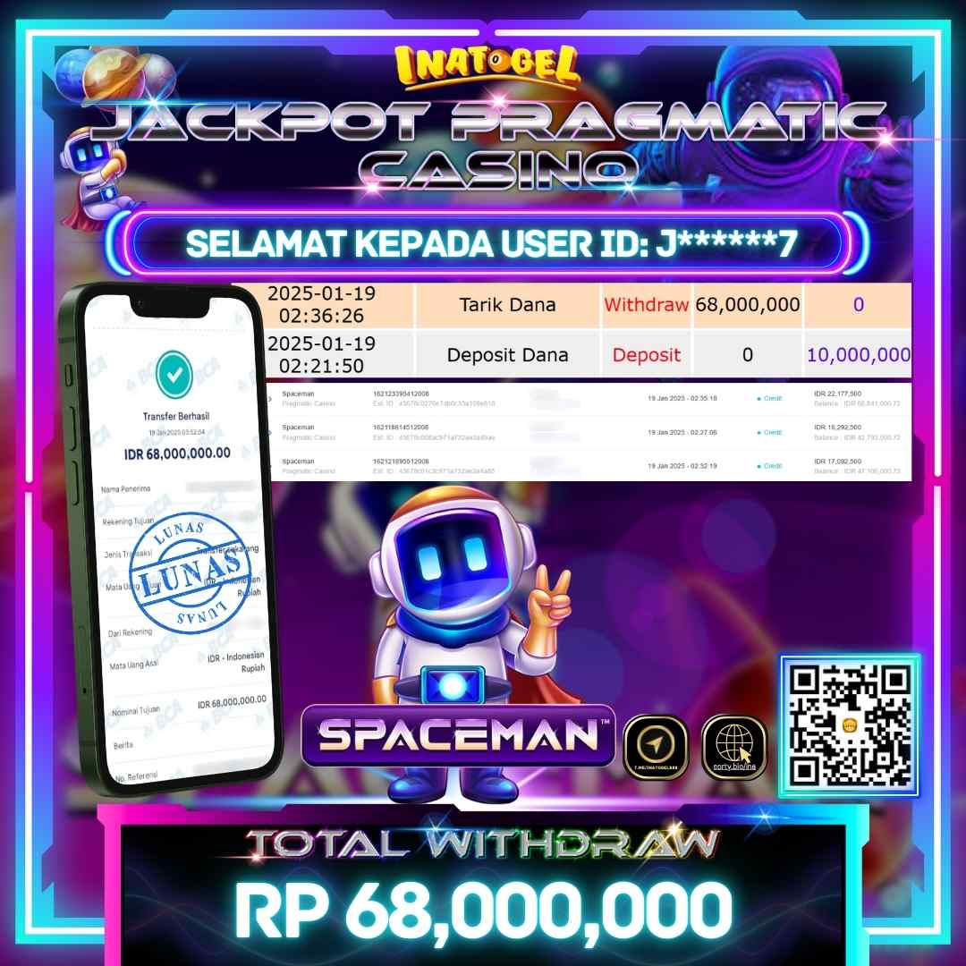 Inatogel Jackpot Pragmatic Casino Spaceman Rp68,000,000