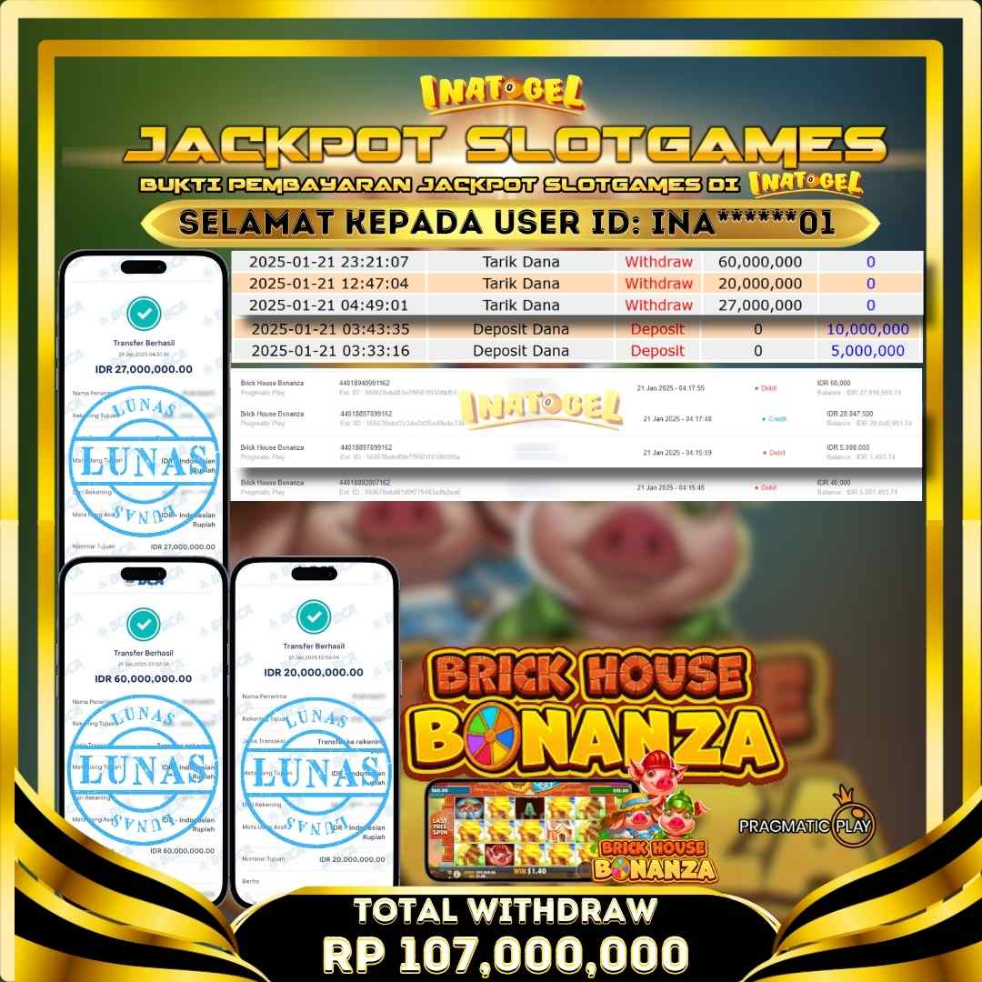 Inatogel Jackpot Slot Game Brick House Bonanza Rp107,000,000