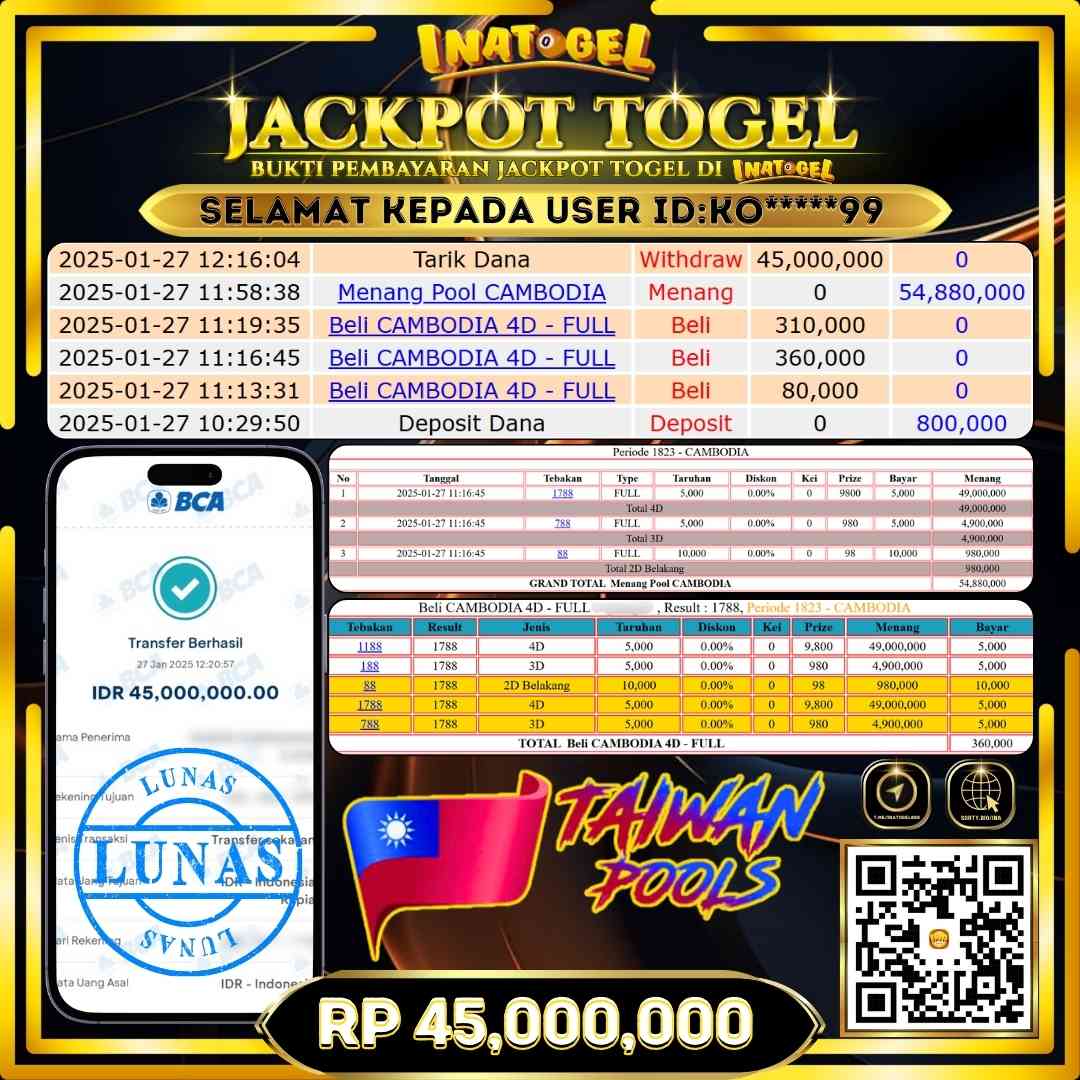 Inatogel Jackpot Togel Taiwan Pools Rp45,000,000