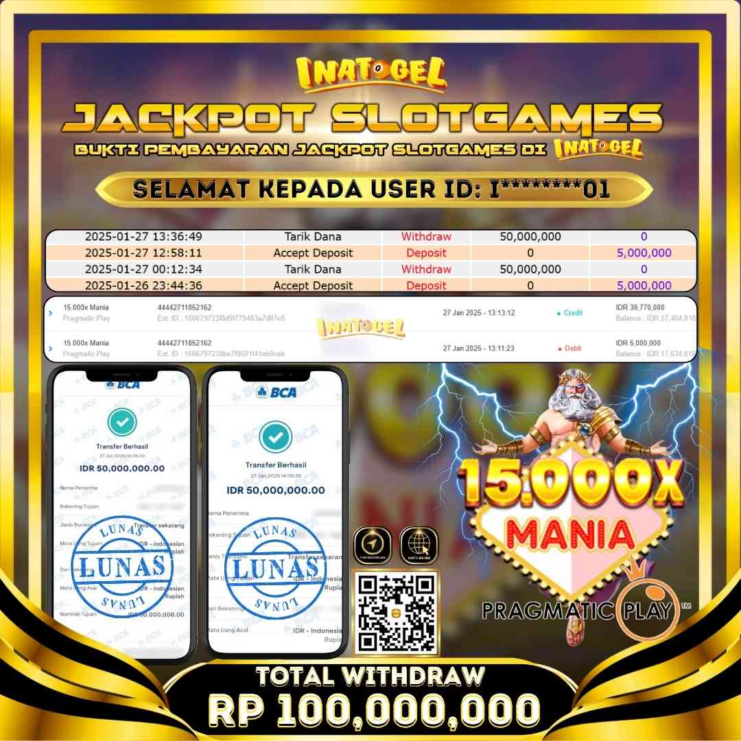 Inatogel Jackpot Slot Game 15,000X Mania Rp100,000,000