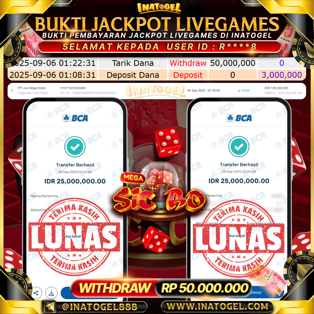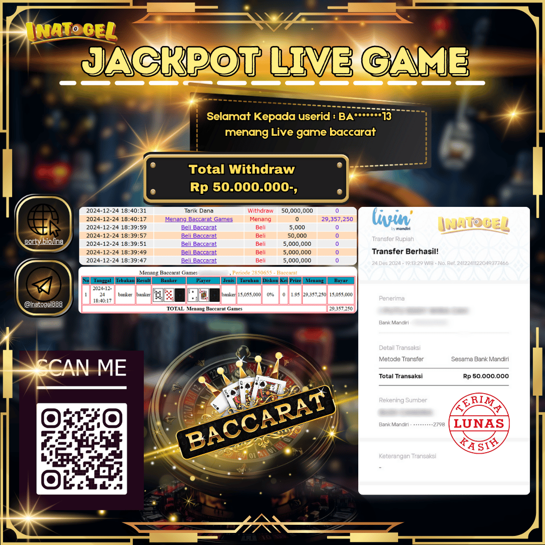 Inatogel Jackpot Live Games Baccarat Rp50,000,000