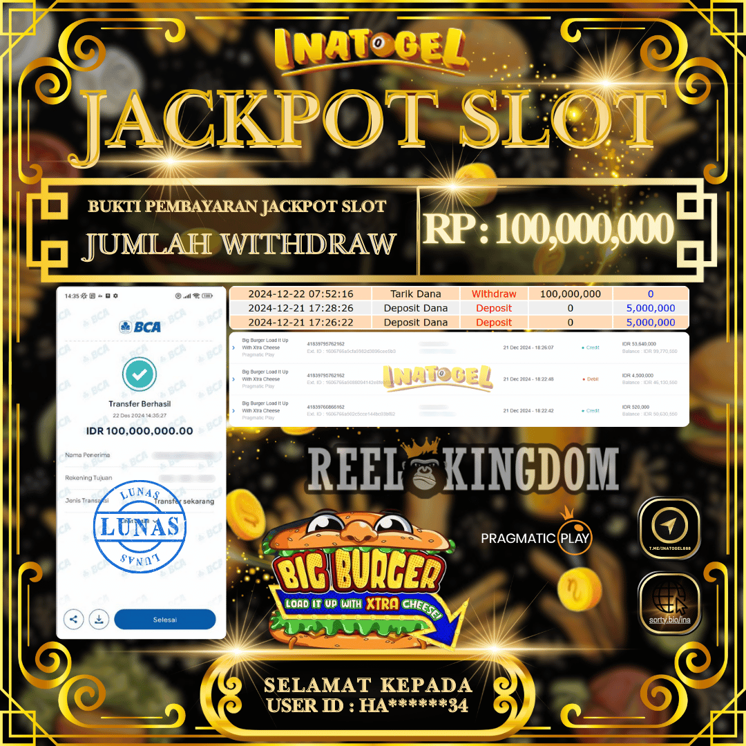 Inatogel Jackpot Slot Game Big Burger Rp100,000,000