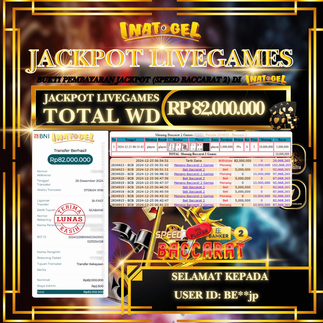 Inatogel Jackpot Live Games Baccarat 2 Rp82,000,000