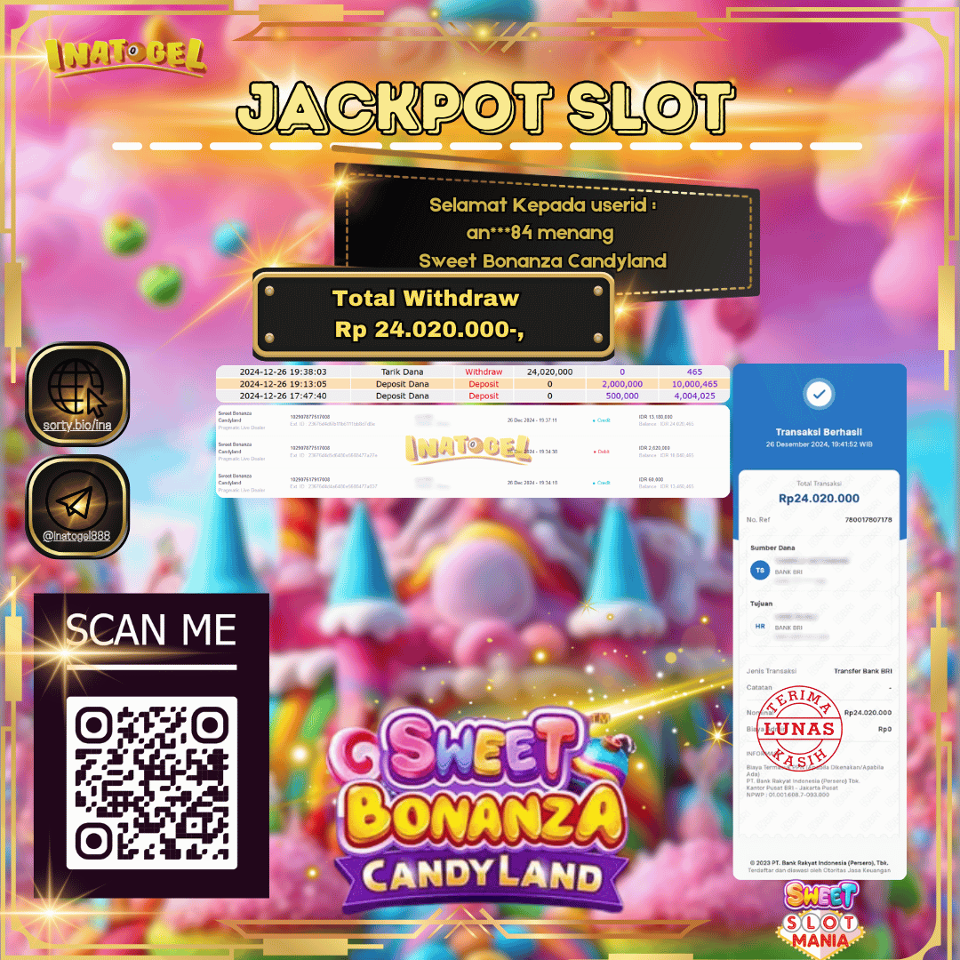 Inatogel Jackpot Live Dealer Sweet Bonanza Candyland Rp24,020,000