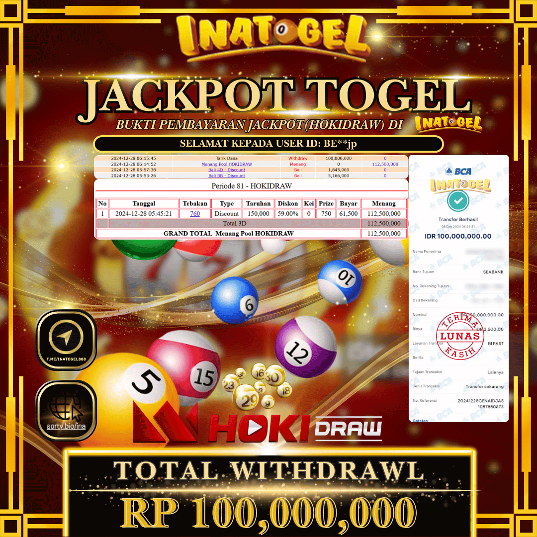 Inatogel Jackpot Togel HOKI DRAW Rp100,000,000