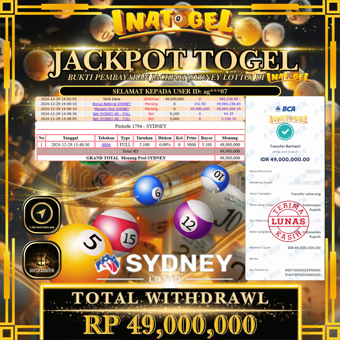 Inatogel Jackpot Togel Sydney Lotto Rp49,000,000