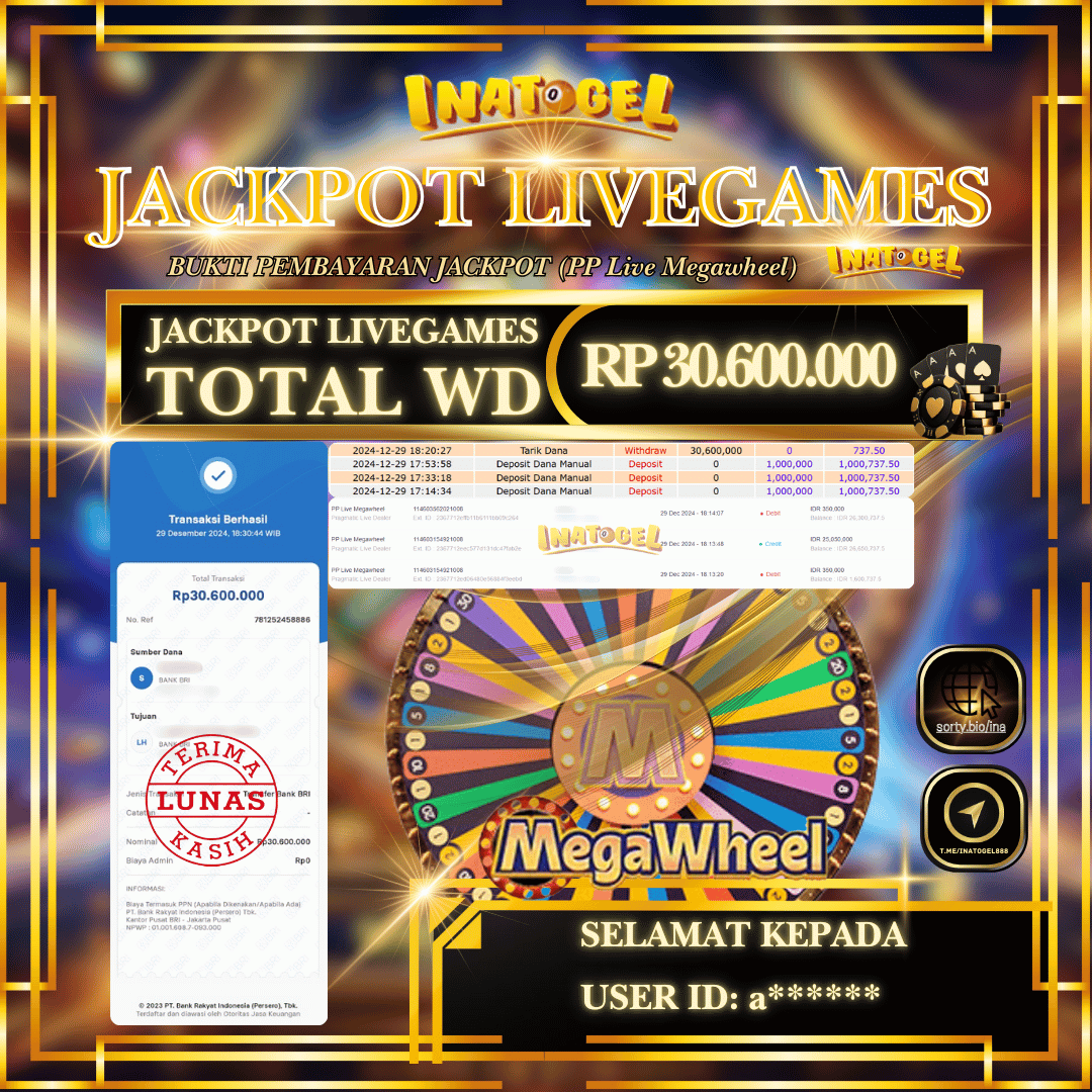 Inatogel Jackpot Live Games PP Live MegaWheel Rp30,600,000