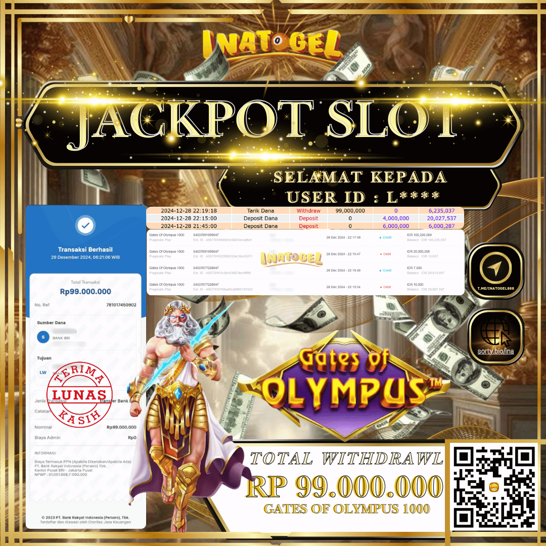 Inatogel Jackpot Slot Game Gates Of Olympus Rp99,000,000