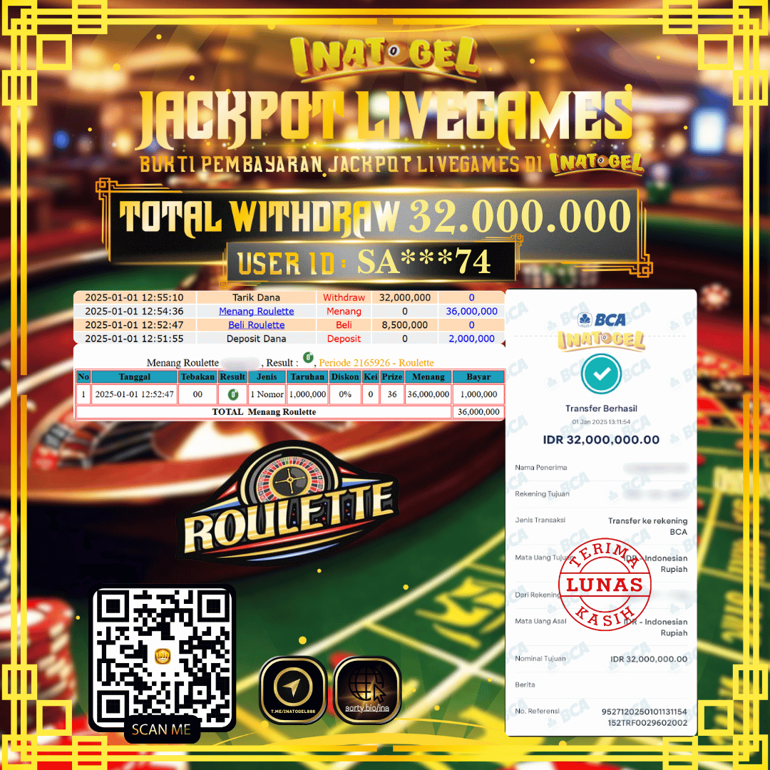 Inatogel Jackpot Live Games Roulette Rp32,000,000