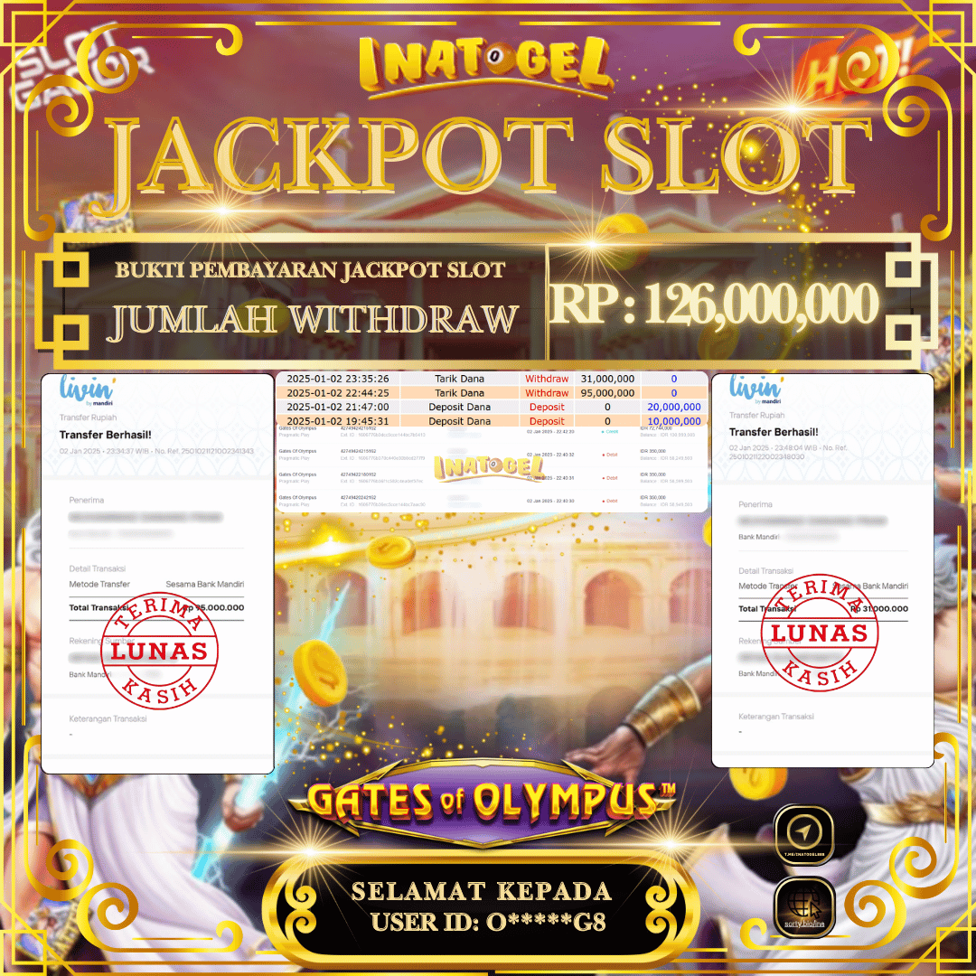 Inatogel Jackpot Slot Game Gates Of Olympus Rp126,000,000