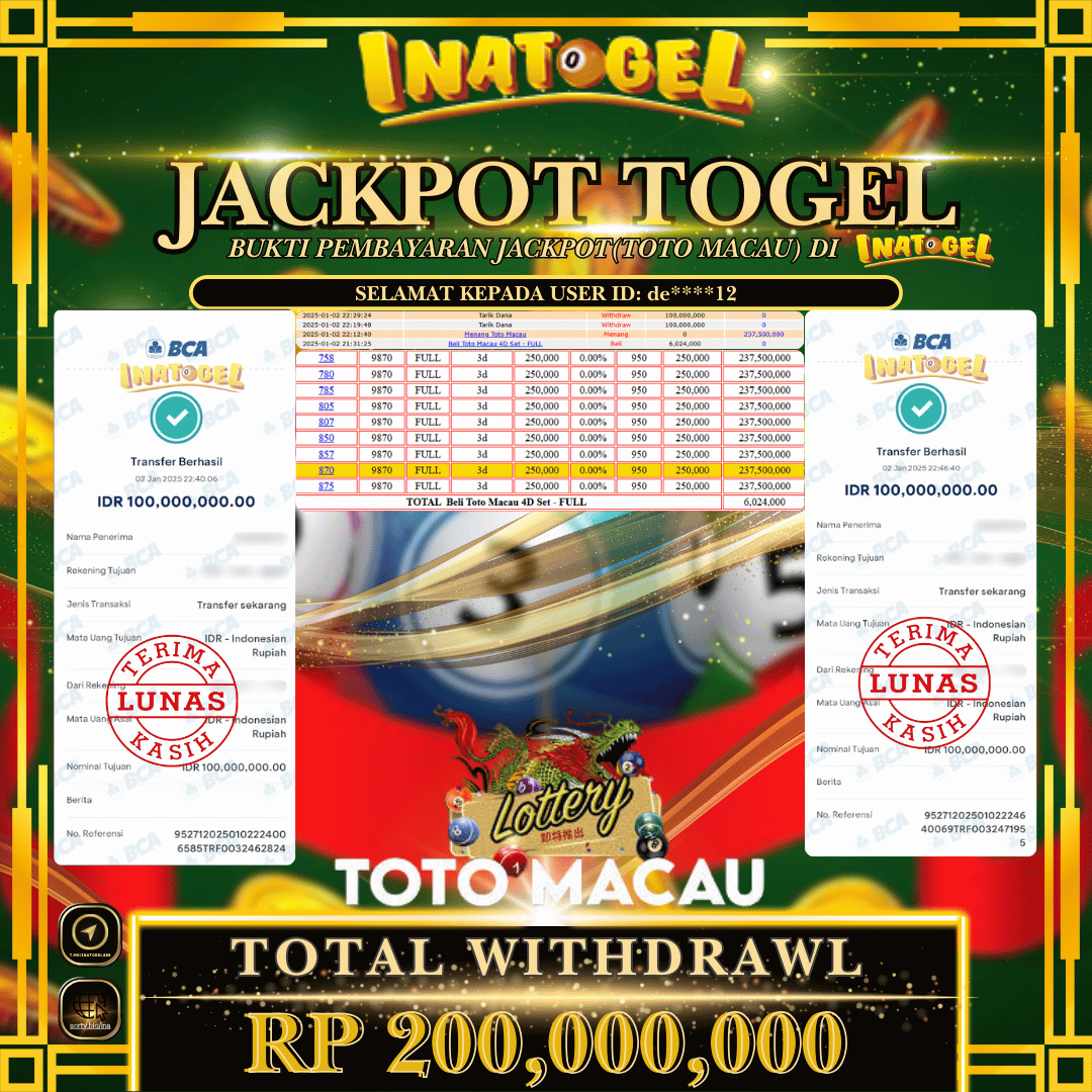 Inatogel Jackpot Togel Toto Macau Rp200,000,000