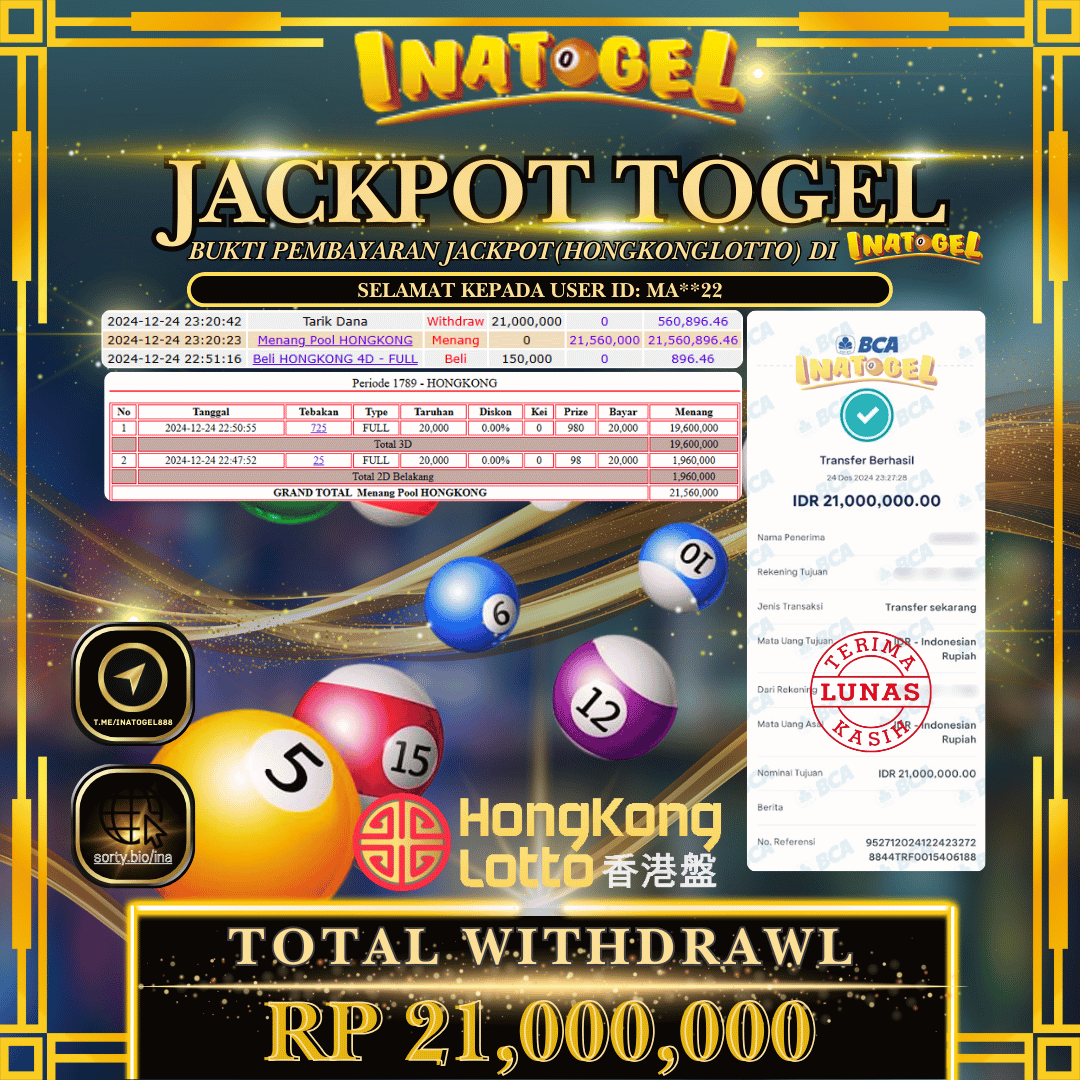 Inatogel Jackpot Togel Hongkong Lotto Rp21,000,000