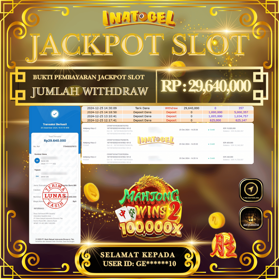 Inatogel Jackpot Slot Game Mahjong Wins2 Rp29,640,000