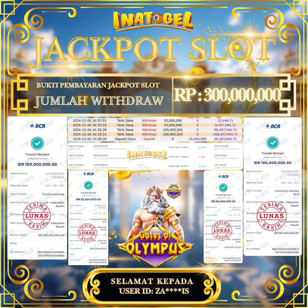 Inatogel Jackpot Slot Game Gates Of Olympus Rp300,000,000