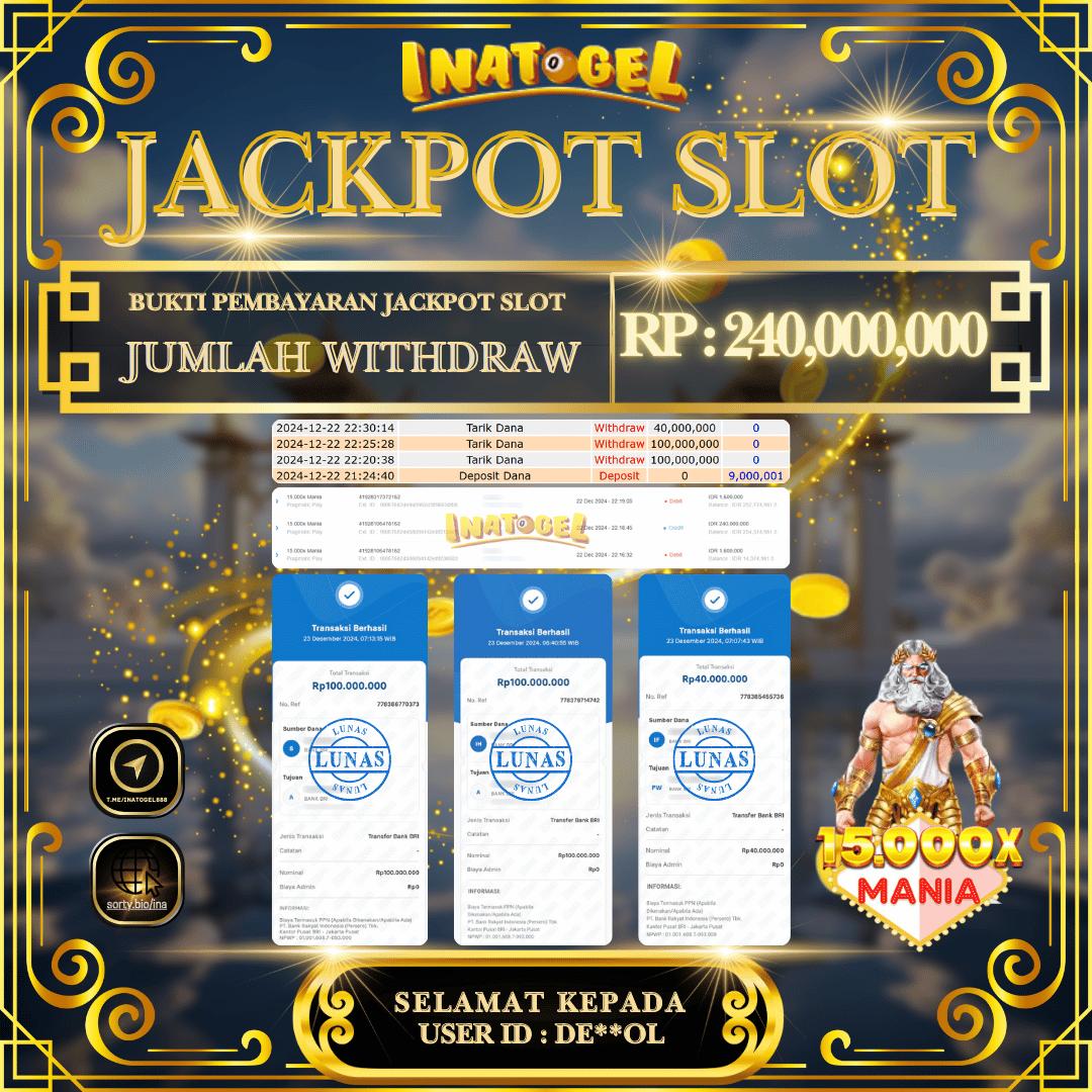Inatogel Jackpot Slot Game 15,000X Mania Rp240,000,000