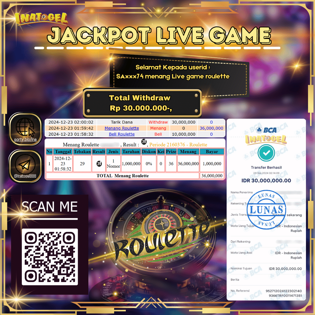 Inatogel Jackpot Live Games Roulette Rp30,000,000