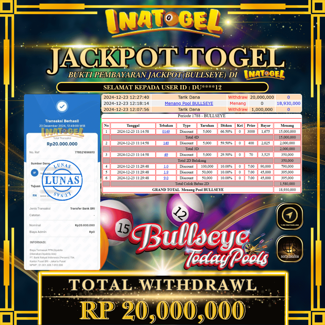 Inatogel Jackpot Togel Bullseye Rp20,000,000