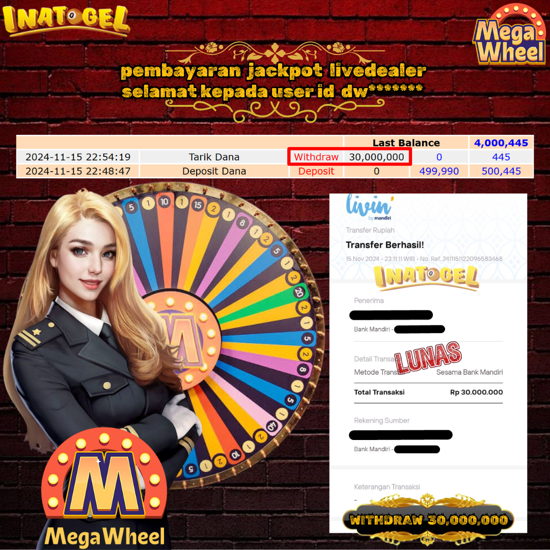 Inatogel Jackpot Live Dealer Mega Wheel Rp30,000,000
