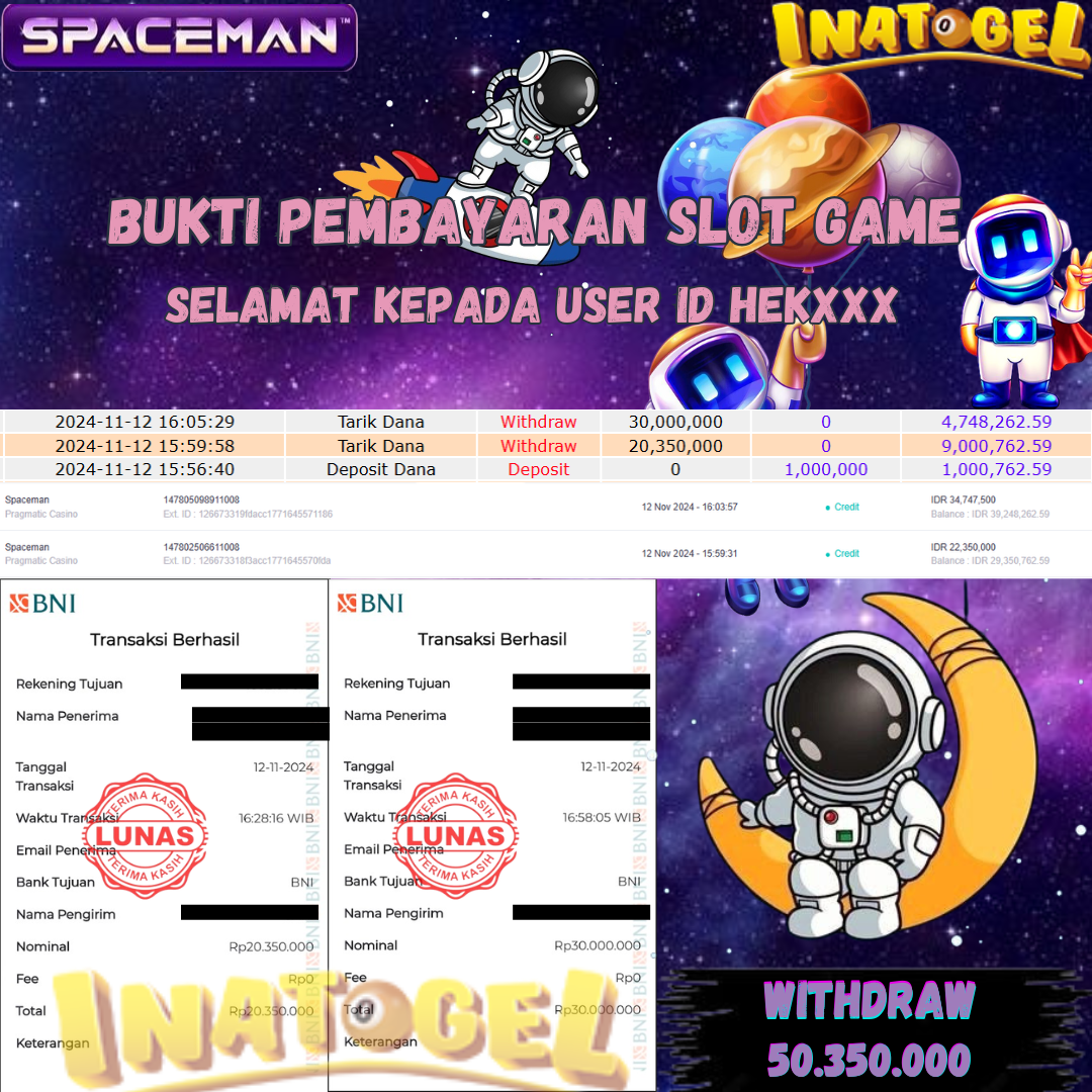 Inatogel Jackpot Slot Game Spaceman Rp50,350,000