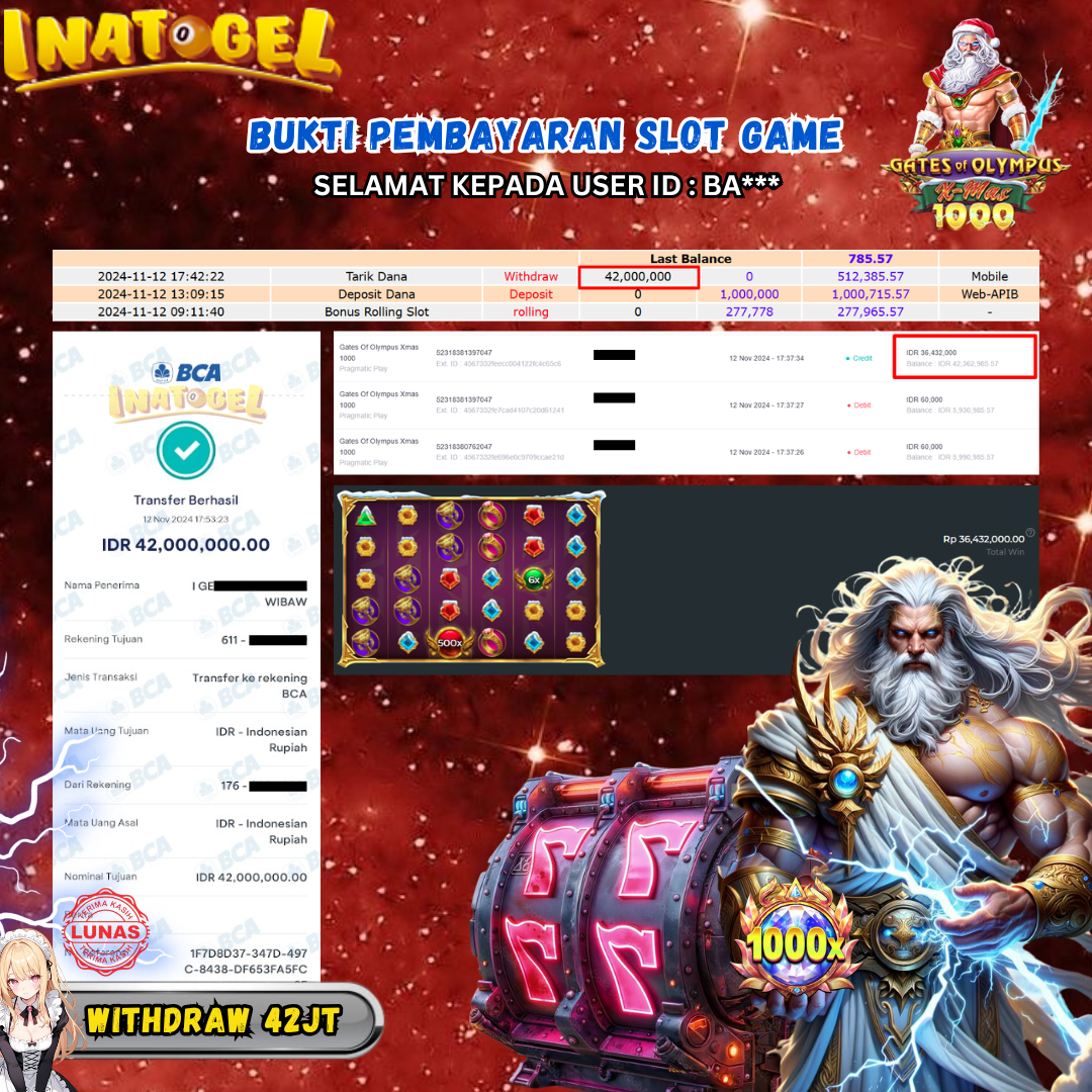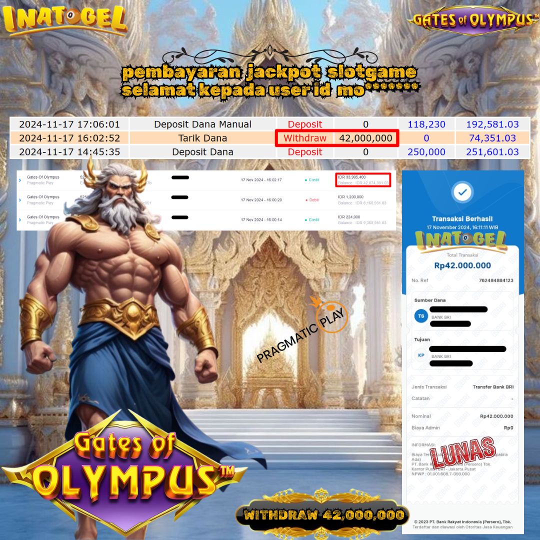 Inatogel Jackpot Slot Game Gates Of Olympus Rp42,000,000