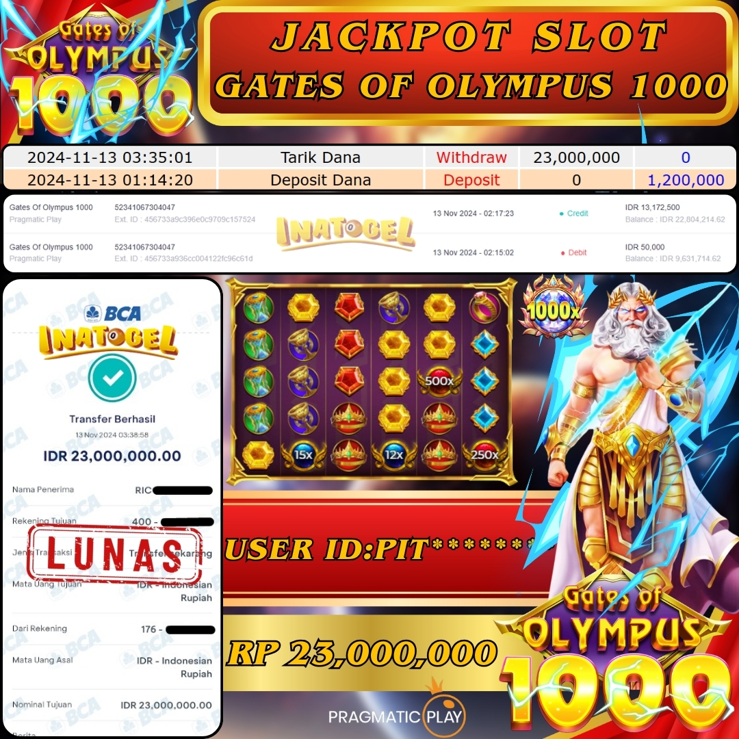 Inatogel Jackpot Slot Game Gates Of Olympus 1000 Rp23,000,000