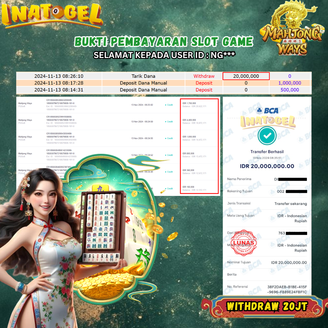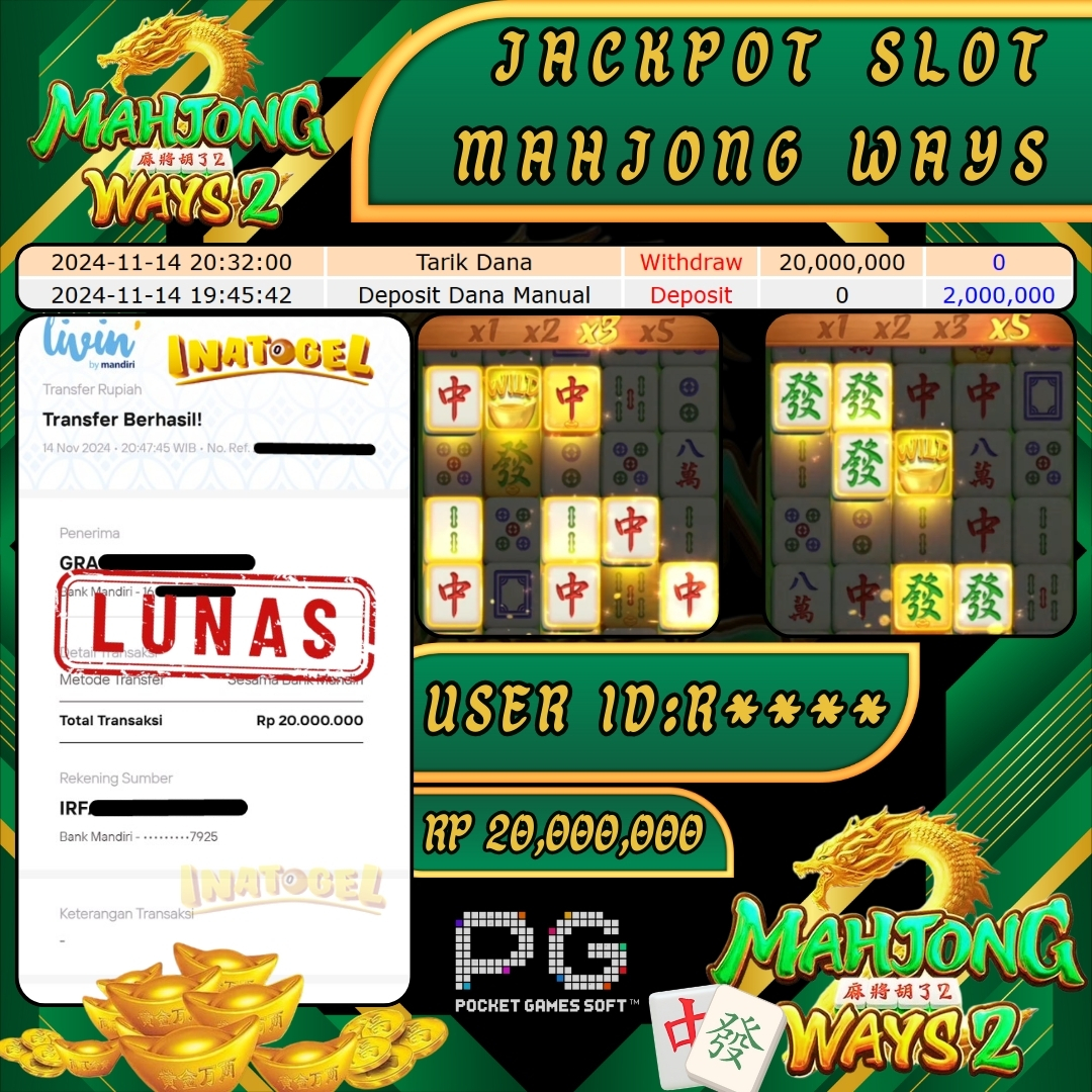 Inatogel Jackpot Slot Game Mahjong Ways Rp20,000,000