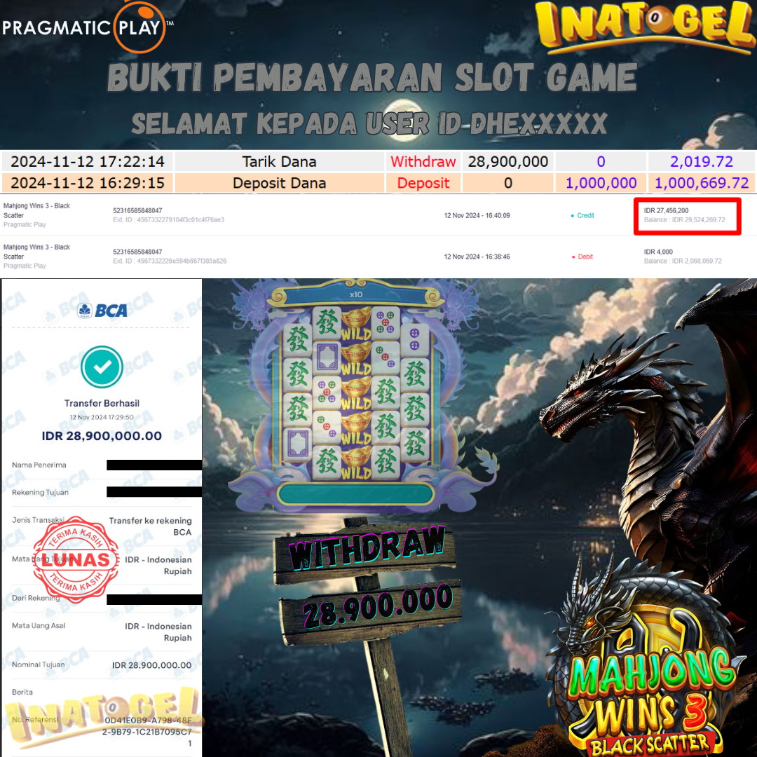 Inatogel Jackpot Slot Game Mahjong Wins 3 - Black Scatter Rp28,900,000