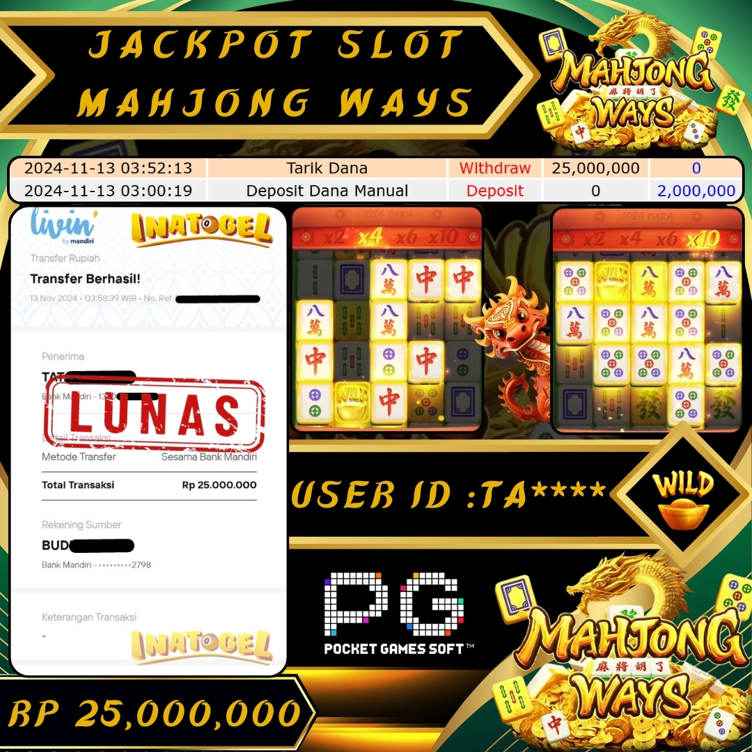 Inatogel Jackpot Slot Game Mahjong Ways Rp25,000,000