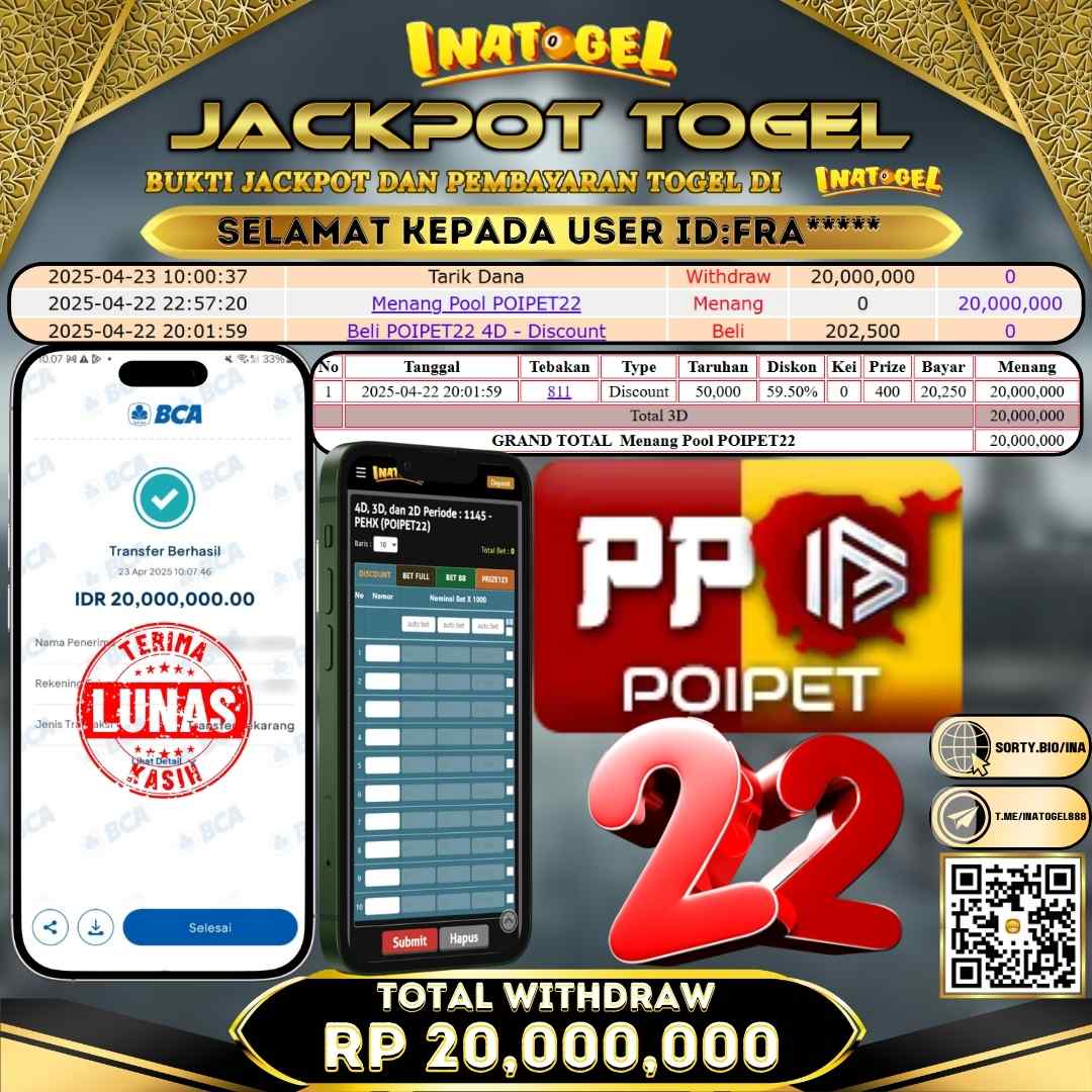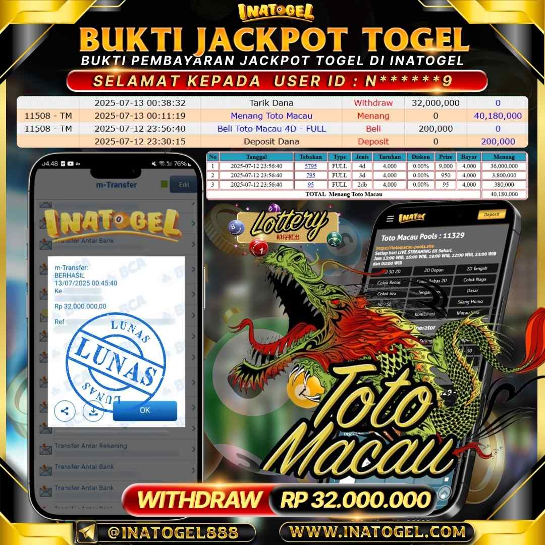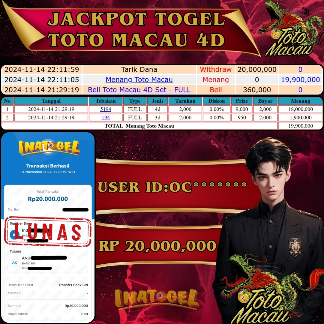 Inatogel Jackpot Togel Toto Macau 4D Rp20,000,000