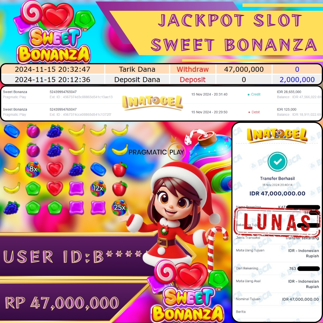 Inatogel Jackpot Slot Game Sweet Bonanza Rp47,000,000