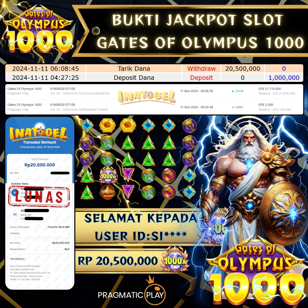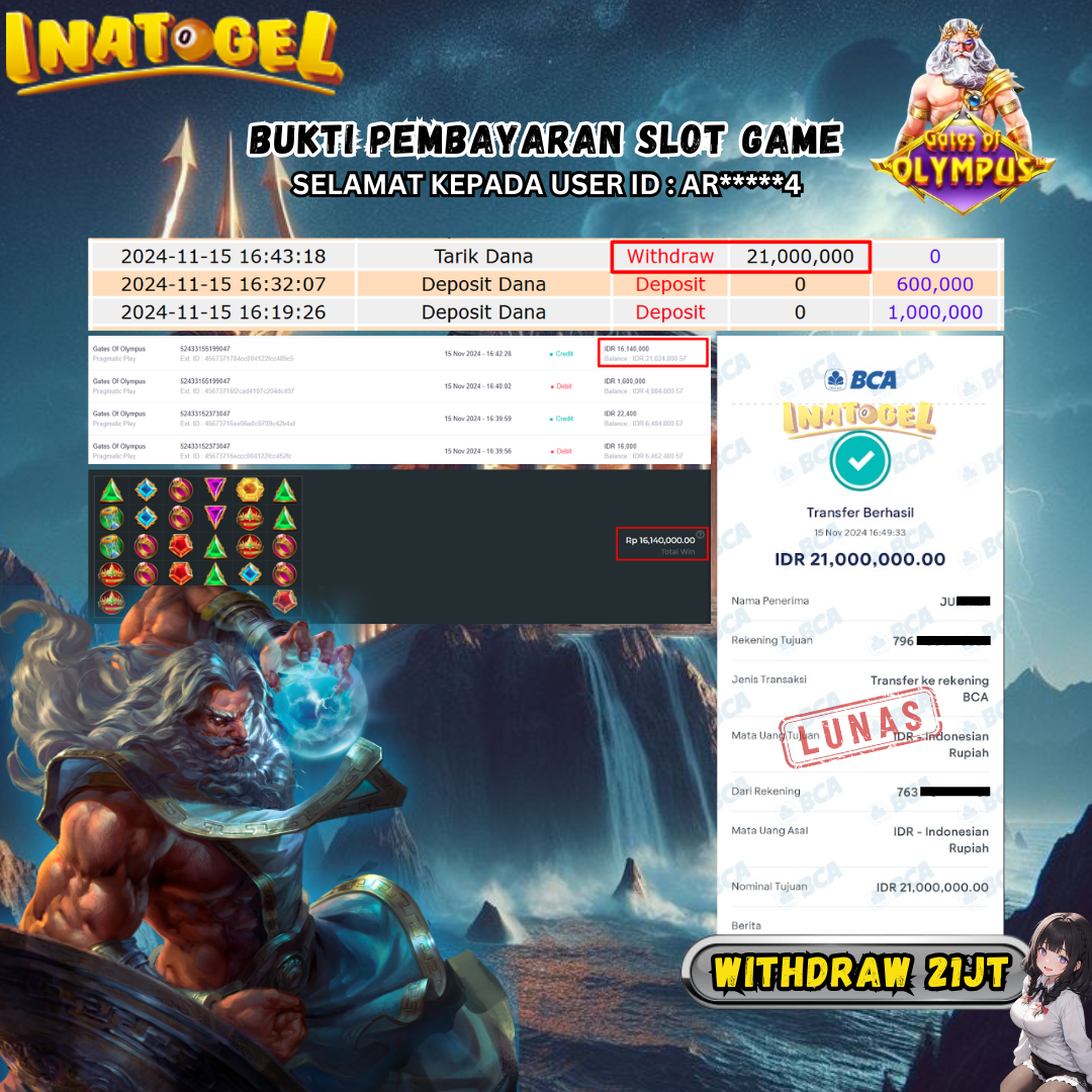 Inatogel Jackpot Slot Game Gates Of Olympus Rp21,000,000