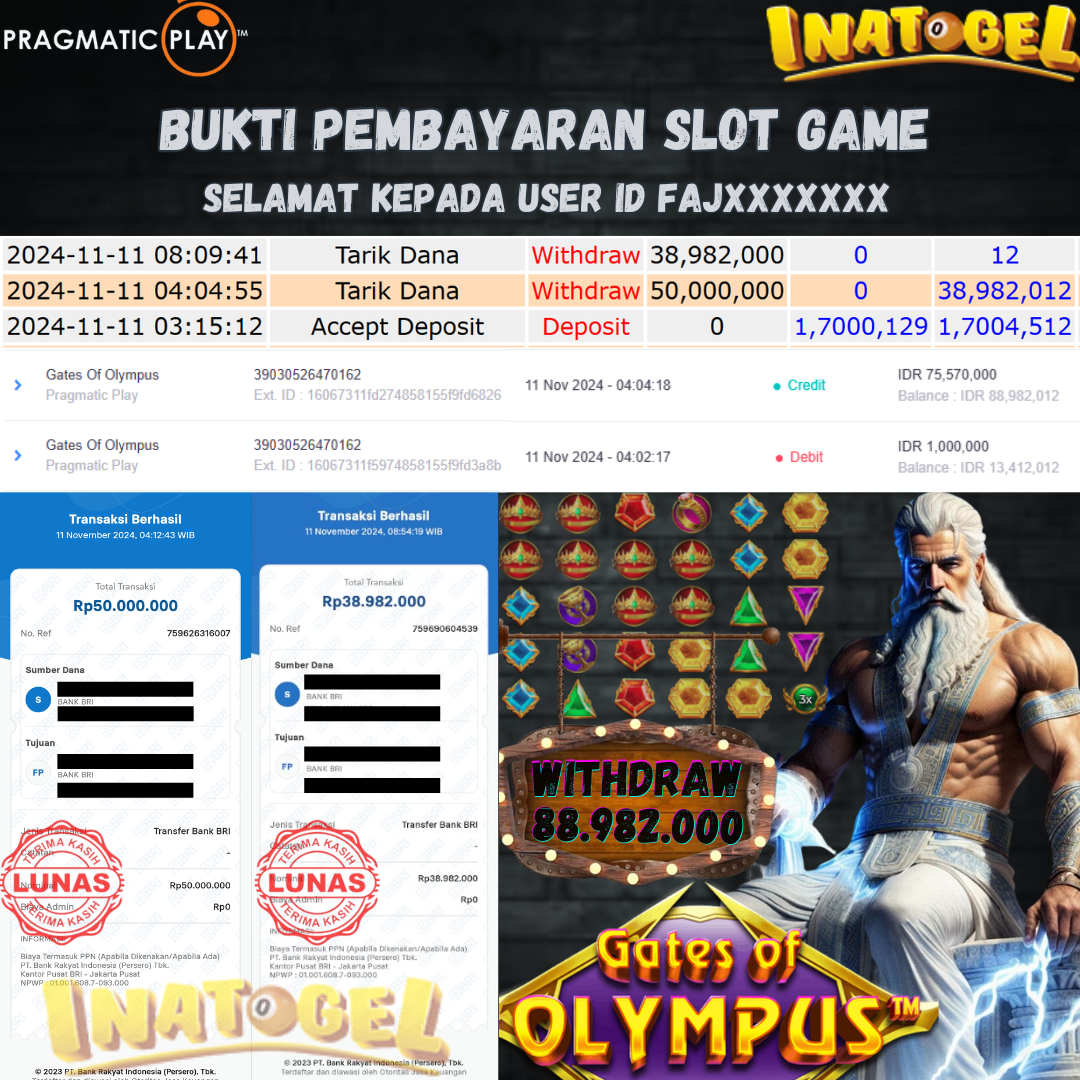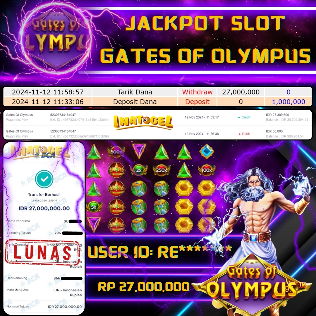 Inatogel Jackpot Slot Game Gates Of Olympus Rp27,000,000