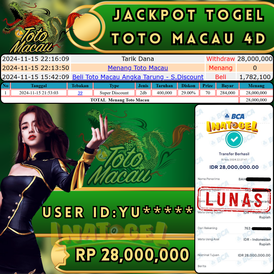Inatogel Jackpot Togel Toto Macau 4D Rp28,000,000