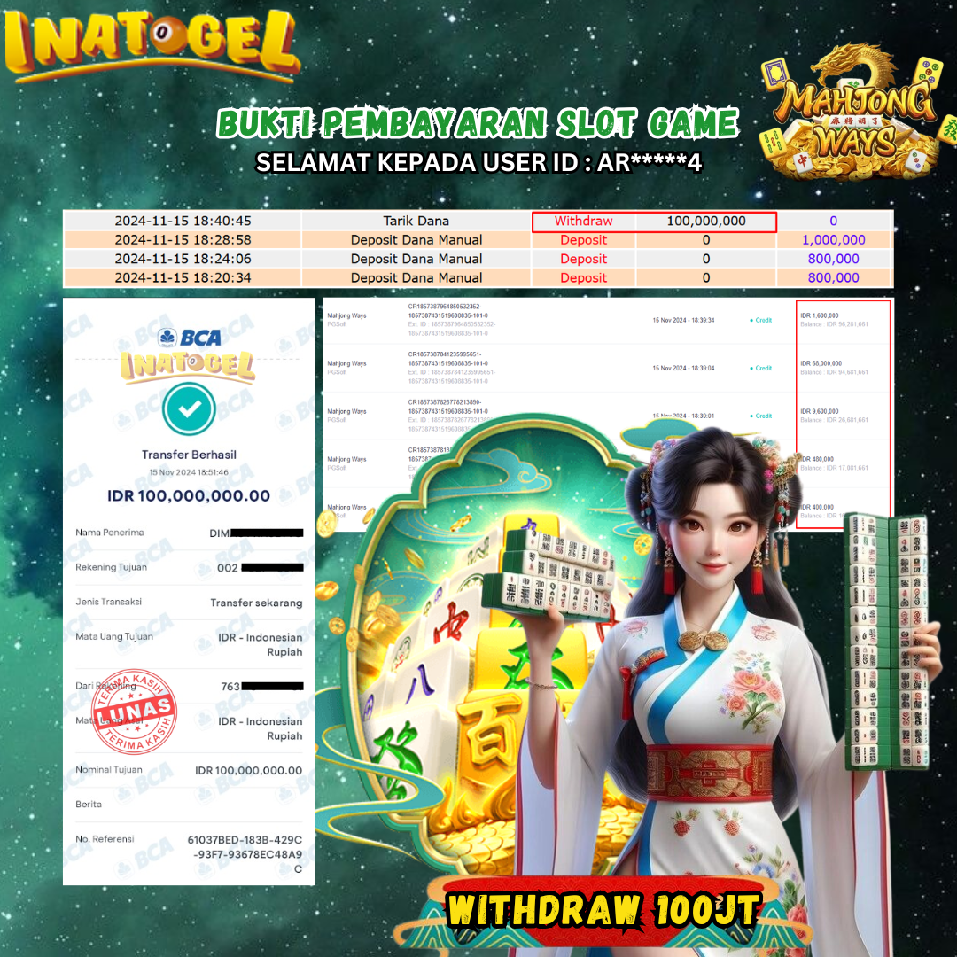 Inatogel Jackpot Slot Game Mahjong Ways Rp100,000,000