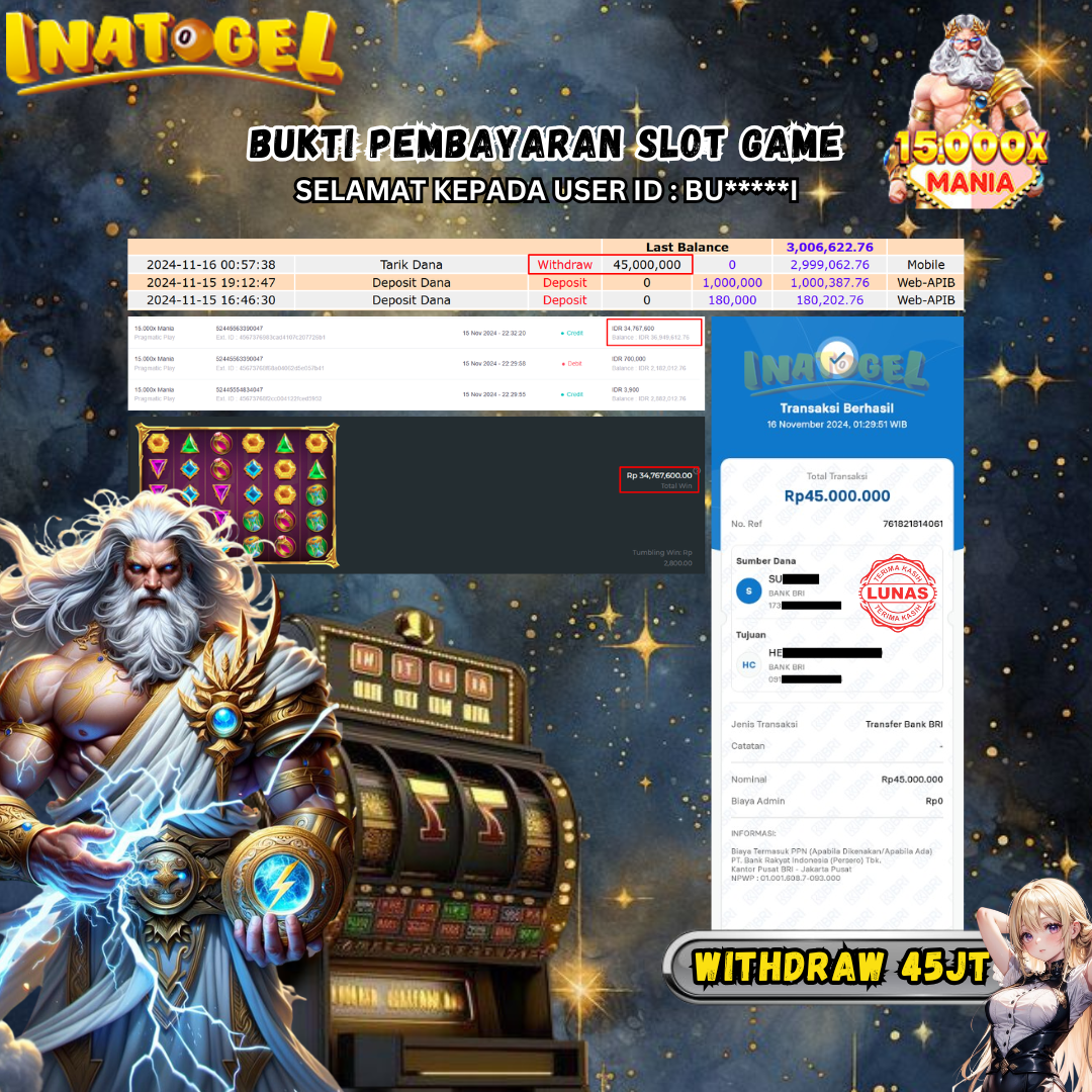 Inatogel Jackpot Slot Game 15.000x Mania Rp45,000,000