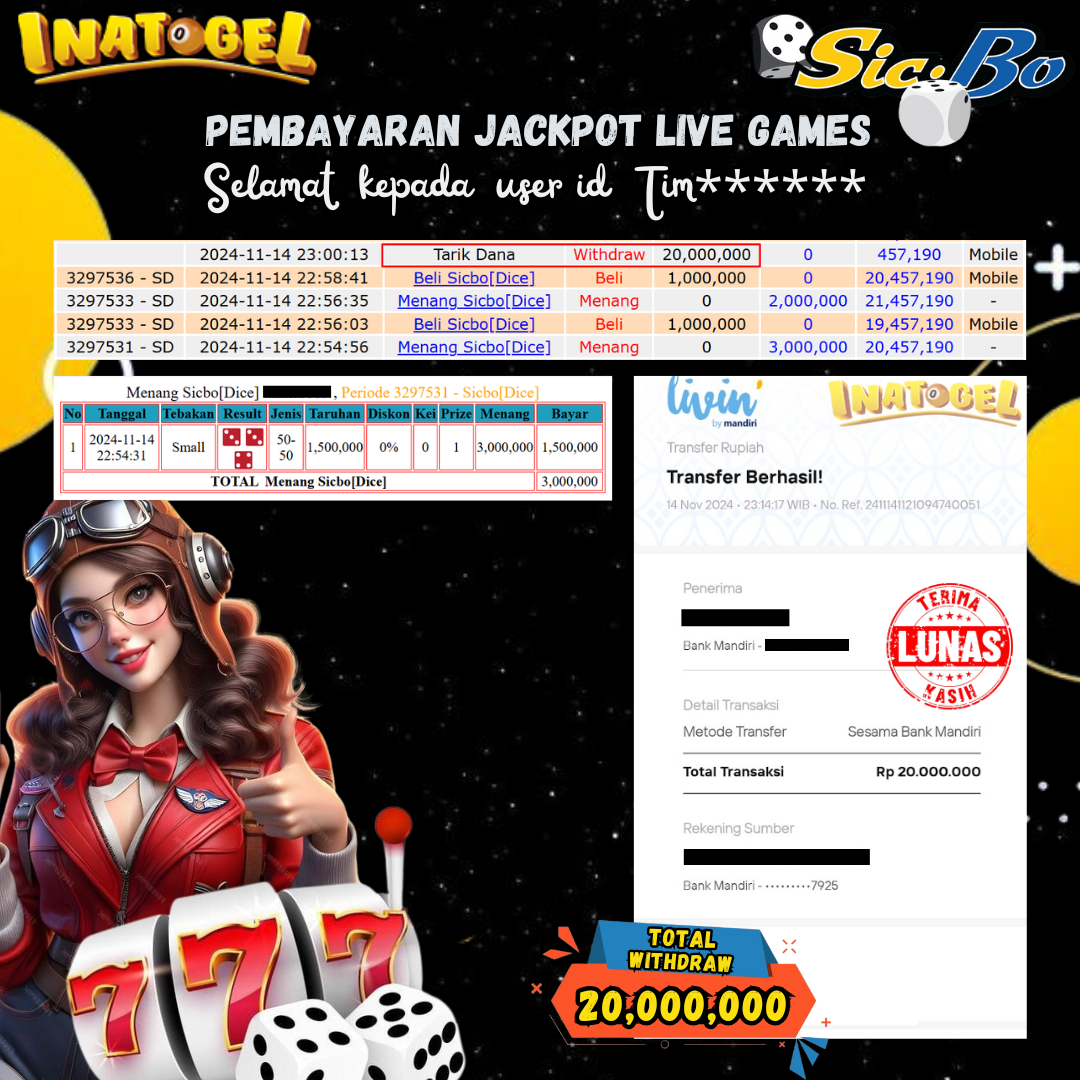 Inatogel Jackpot Live Games Sic Bo Rp20,000,000