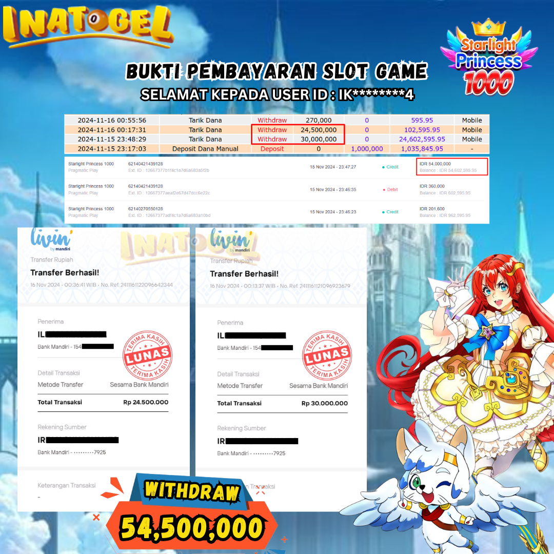 Inatogel Jackpot Slot Game Starlight Princess 1000 Rp54,500,000